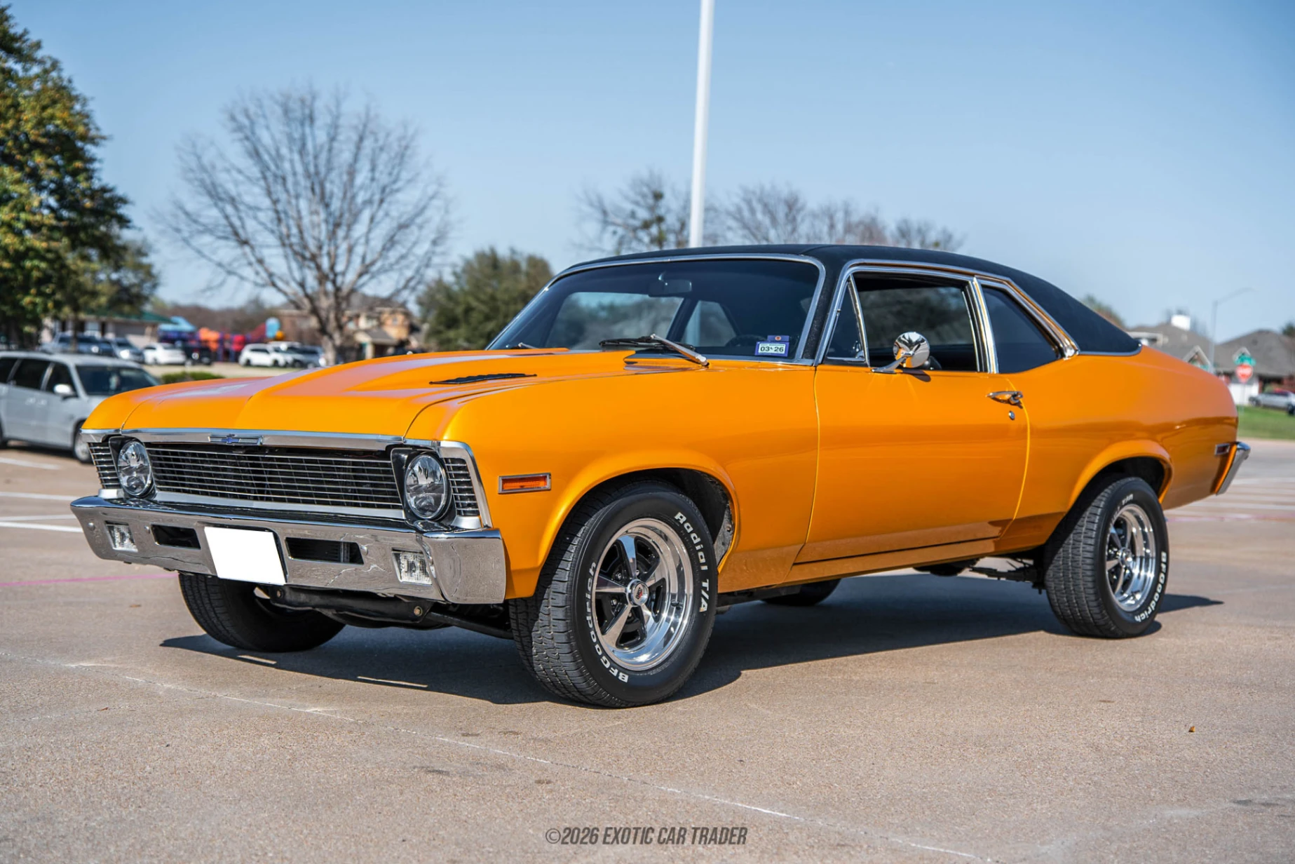 The Chevrolet Nova has long been a favorite among muscle car enthusiasts thanks to its lightweight body and excellent potential for high-performance builds. This 1972 Chevrolet Nova takes that formula to another level with a heavily upgraded drivetrain and numerous performance enhancements throughout. Showing under 77,000 miles, this Nova is powered by a formidable 454ci V8 paired with a TH350 automatic transmission, delivering the kind of torque and acceleration that made big-block muscle cars legendary. Finished in striking Burnt Orange over a black interior, the car blends classic American muscle styling with a thoughtfully assembled list of aftermarket upgrades aimed at improving power, reliability, and drivability.