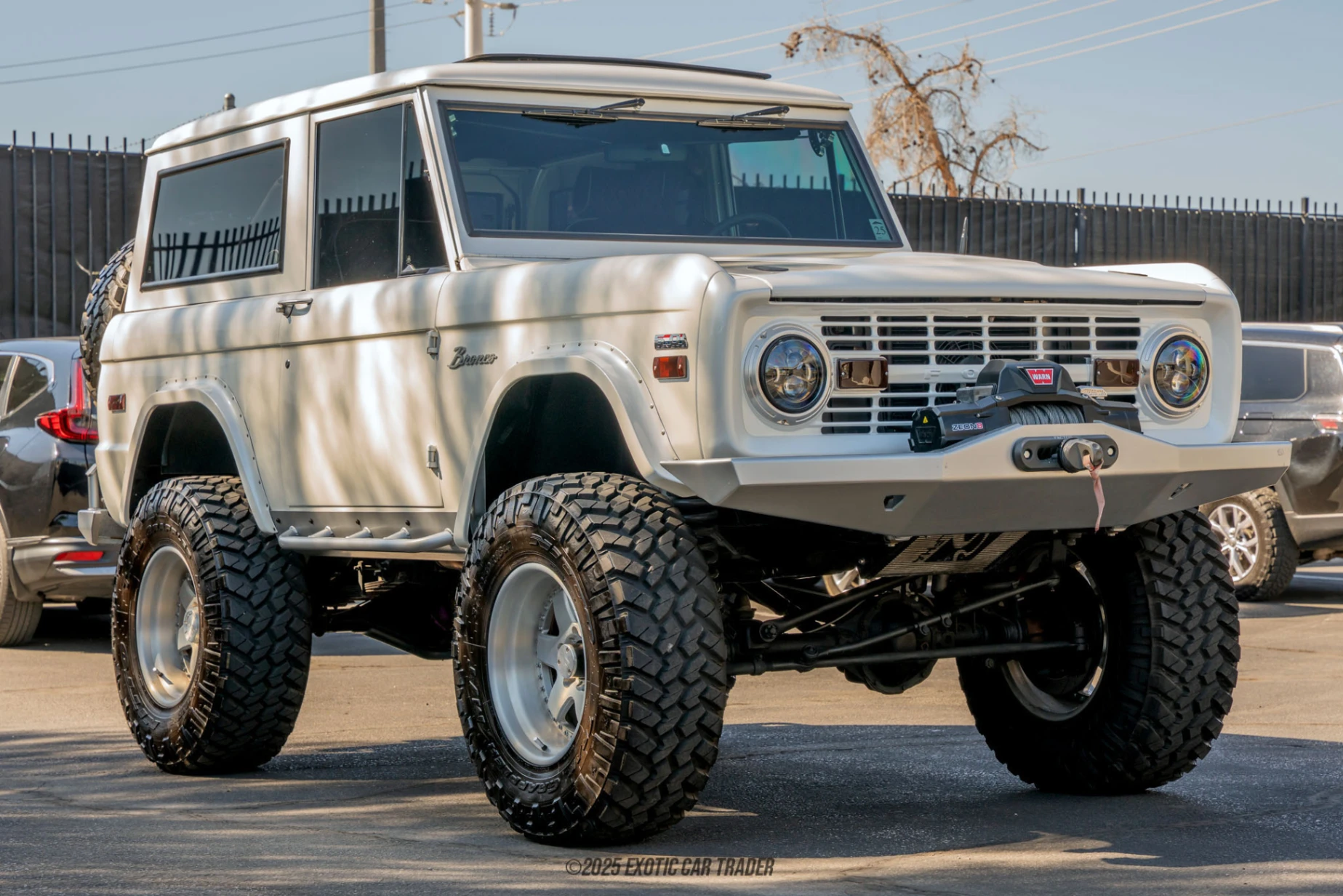 This 1969 Ford Bronco Sport Restomod redefines the spirit of the first-generation Bronco, blending its rugged heritage with modern performance and luxury. Powered by a supercharged 5.0L Coyote V8 paired with a ZF 5-speed manual transmission, it delivers thrilling power and control in any driving condition. The Lexus Pearl White finish gives it a sophisticated glow, while meticulous craftsmanship throughout reflects an attention to detail rarely seen in custom off-road builds. Combining off-road capability, contemporary refinement, and show-quality presentation, this Bronco stands as both a capable adventure vehicle and a statement piece.