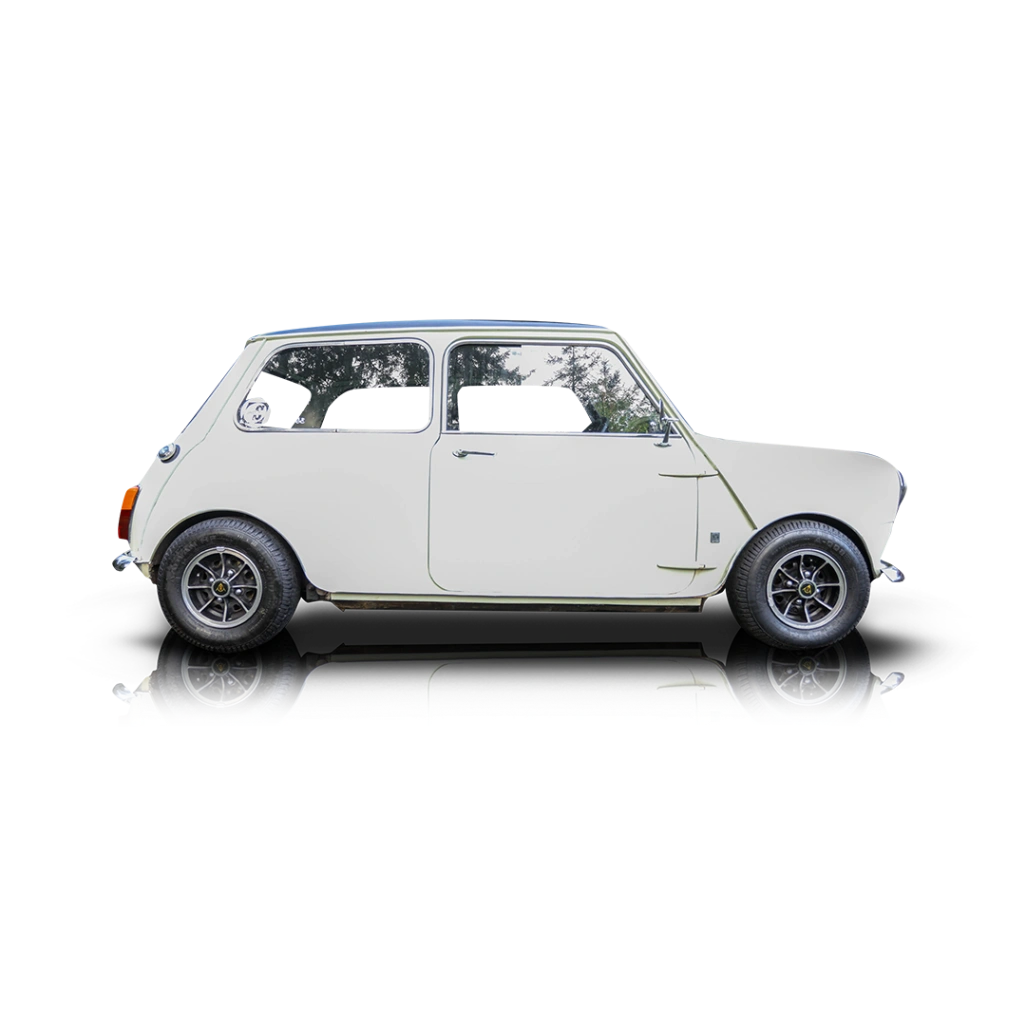 This 1969 Austin Mini Cooper MKII is powered by a 998cc four-cylinder engine, which is actually the largest engine offered in a classic Mini. The water-cooled unit is fed by twin SU carburetors and is a zingy little thing. It happily revs up, and delivers power to the front wheels through a 4-speed manual gearbox. You’ve also got front disc brakes and rear drums to help stop this car – because its got such go-kart like handling, you’ll definitely get carried away!