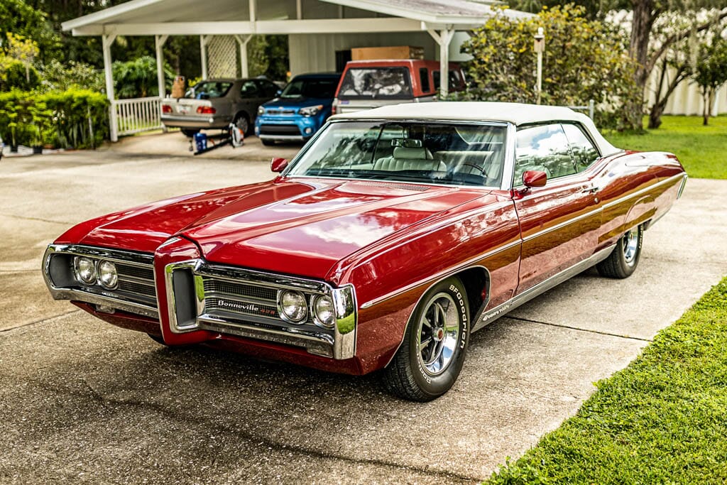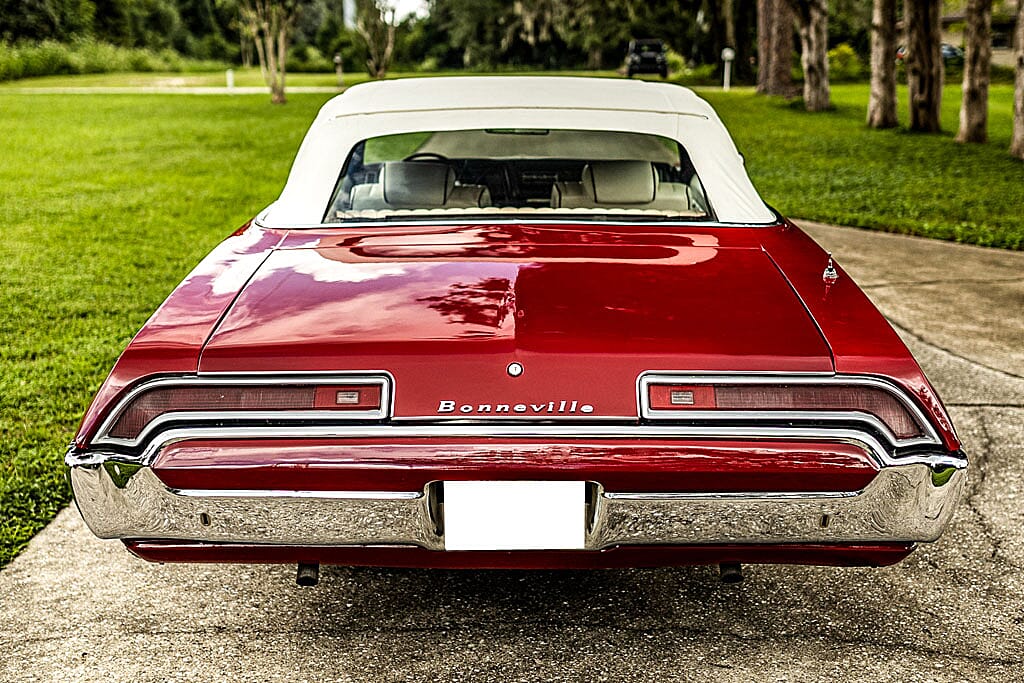 Ever since its inception, the Pontiac Bonneville would change design and features a lot and by 1965 the marque was on its 5th generation. The changes were not the addition of a cup holder or a minor facelift, but major styling changes and upgrades done to each model designation. This 1969 Pontiac Bonneville Convertible sports a red exterior that makes this car pop and highlight that coke body styling well. Walking around the car can be a task thanks to its fairly large size but looking closer you would note that the car sports all its exterior components which are in great shape as well. Giving this car its iconic stance is a set of PMD Rally wheels that boasts sportiness and class. Cruising down the street has never been this comfortable. Looking at the white interior on this 1969 Pontiac Bonneville Convertible you aren’t just treated to originality at ever glance but a lovely drive feel thanks to the well-appointed interior. The car reportedly sports new seats and carpet to keep up with the rest of the interior which is in great condition.