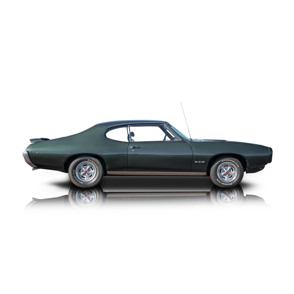 A defining muscle car of the late 60s, the 1969 Pontiac GTO captured the era’s spirit with brute V8 power and unmistakable styling. This example, finished in green over a black interior, is reportedly powered by a 400ci V8 paired with a 3-speed Turbo-Hydramatic automatic transmission and remains largely true to its factory configuration. Tasteful updates such as modern air-conditioning and Bluetooth audio enhance usability while preserving the car’s classic personality. With its strong mechanical foundation and desirable drivetrain, this GTO offers a proper blend of originality, comfort, and vintage American muscle.