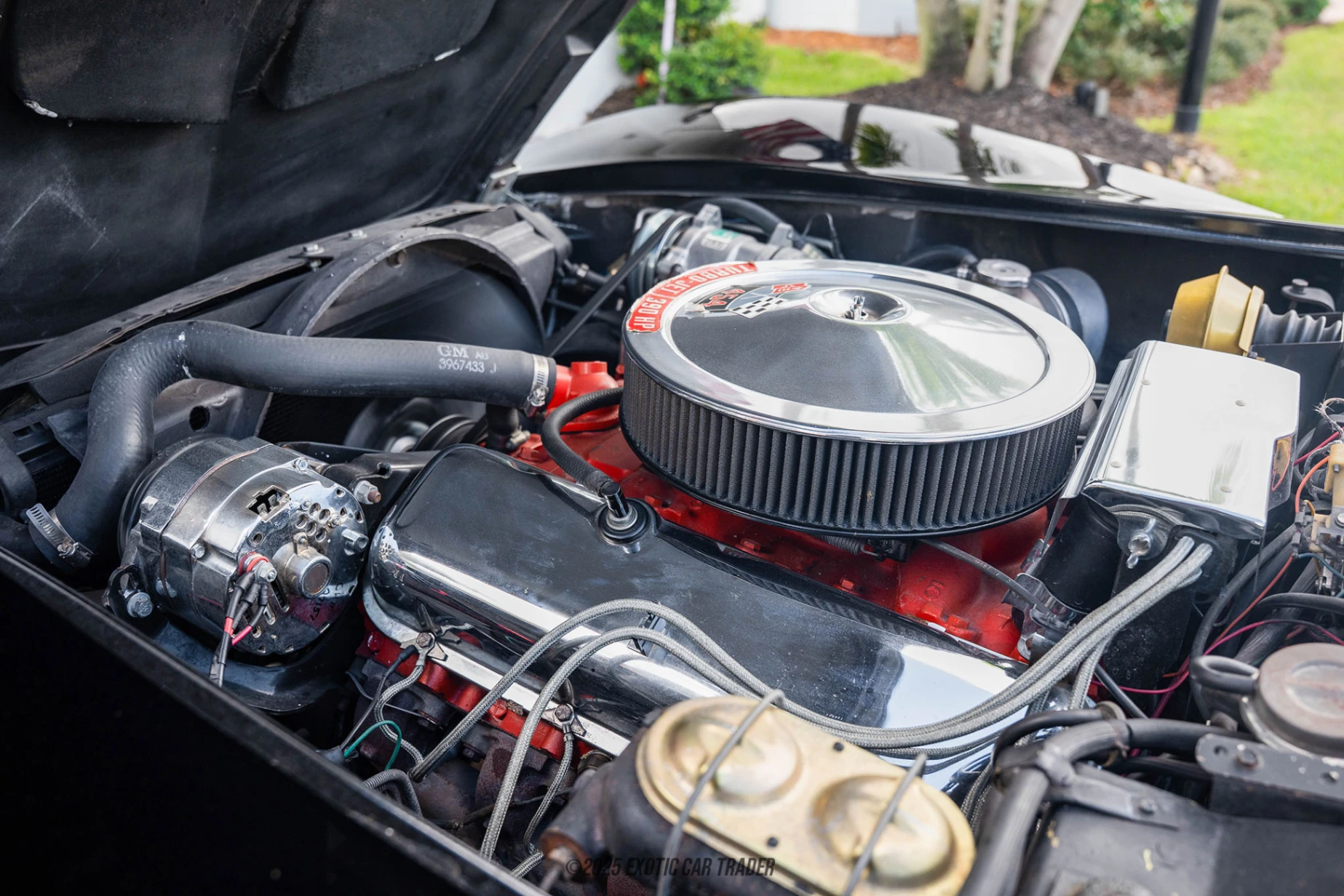 This car was reportedly resprayed in 2020. And it shows, because this Corvette’s black exterior remains deep and striking, complemented by a replaced black vinyl convertible top that adds fresh usability. The classic Stingray lines are further accented by a teak wood steering wheel, a stylish period element that enhances the cabin’s character. Inside, the black interior maintains a cohesive presentation, balancing originality with subtle upgrades such as a replaced top and an aftermarket A/C system. That makes this convertible more enjoyable in warmer climates.
