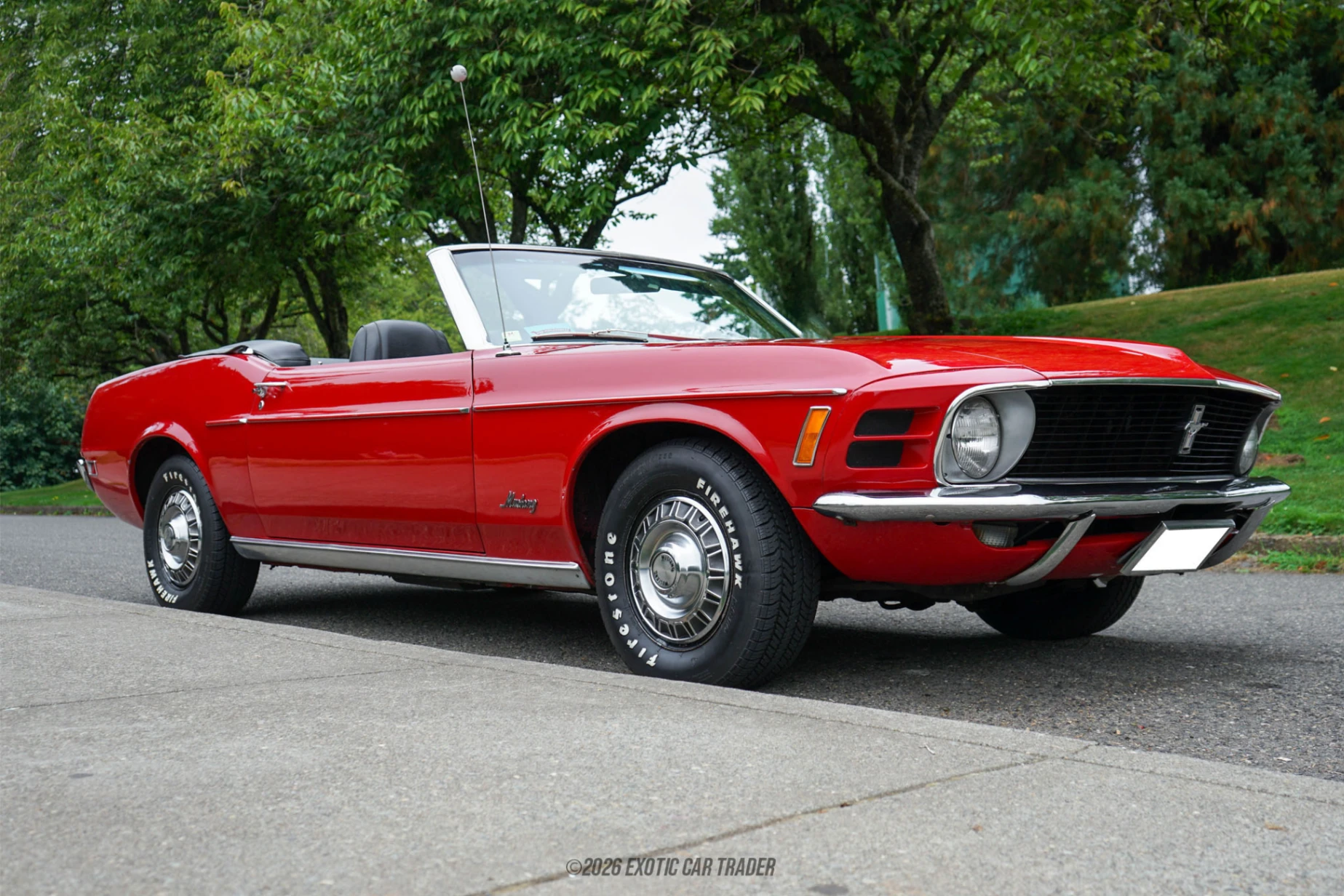 It's a common sight in the marketplace for classic Ford Mustangs to find machines that feature a host of upgrades to stand out. While there is nothing wrong with that, it is sometimes lovely to see a machine in all its glory, one that dons its original persona and doesn't pretend. This 1970 Ford Mustang Convertible is exactly that and more. Dressed in a lovely red exterior, this classic beauty doesn't have to pretend to turn heads; its beauty is in its own skin. A walk around reveals factory aesthetic at every glance; you have all that classic styling preserved to perfection, a black convertible top, and a set of period correct wheels in place. There is good news when stepping into the black interior cabin of this 1970 Ford Mustang Convertible; the factory aesthetic continues and is not sacrificed for modern tech. Once comfy, a look around the interior cabin reveals originality and subtle upgrades, which include Vintage Air Conditioning and an aftermarket radio that does a perfect job of blending in and giving you more comfort when you have this car's convertible top back on.