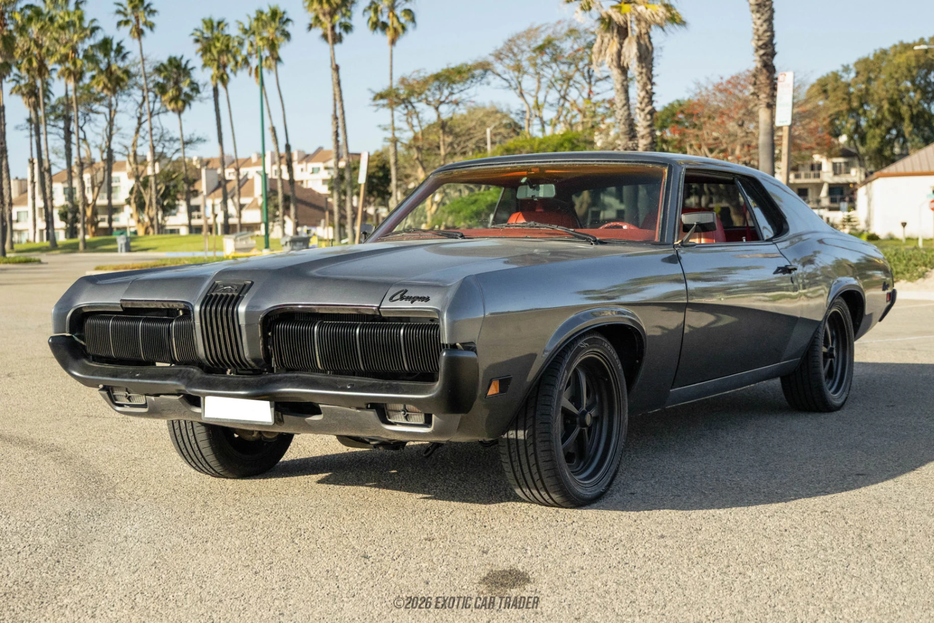 The exterior of the 1970 Mercury Cougar is finished in a sophisticated Gunmetal Gray color, which adds a modern twist to its vintage flair. Inside, the cabin boasts a vibrant red interior that provides a striking contrast to the exterior, making for a bold and stylish look. The interior design reflects the quality and craftsmanship of its time, aiming to offer comfort and aesthetics. Comfortable seating and a classic dashboard ensure an enjoyable driving experience whether for cruising or attending a car show. This combination of exterior and interior colors enhances the iconic character of the Cougar, appealing to those with a taste for classic American automobiles.