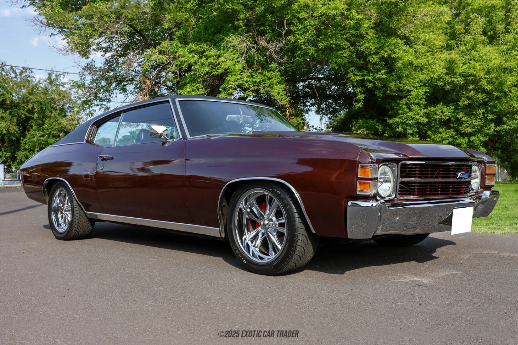 This 1971 Chevrolet Chevelle Malibu perfectly blends classic American muscle with modern reliability and flair. Under the hood lies a 6.0L LSX V8—naturally aspirated and electronically fuel-injected—delivering smooth, responsive power in true restomod fashion. With its shimmering maroon metal flake paint and updated mechanicals, this Chevelle captures the essence of the muscle car golden age while embracing modern craftsmanship. It represents a fine balance between show-car presence and everyday drivability.