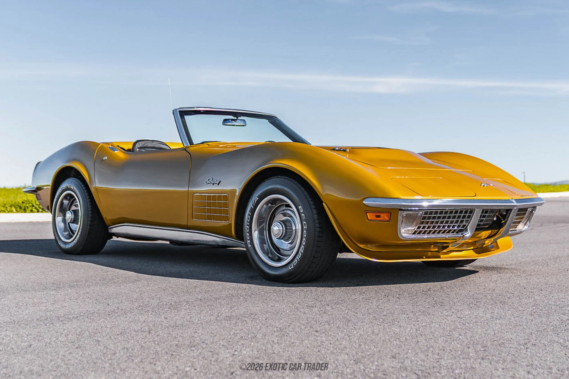 The C3 or third generation Chevy Corvette is an interesting place to be, if you’re a Corvette fan. Made between 1968 and 1982, this era brought about a muscular, rippling performance look that sharply changed the course of the Corvette’s design language. Inspired by Larry Shinoda’s Mako Shark II concept car from several years prior, Bill Mitchell took the design at near face value and translated it into a production model. Under the skin, potent V8s were available, but from 1973 onwards, the Malaise Era placed a chokehold on their performance capabilities. So, if you want a C3 with real muscle to smoke tires and shoot off like a scalded cat, cars like this 1971 Chevrolet Corvette Convertible are ideal. This car boasts just under 6,000 miles, leading us to believe that it’s undergone some refreshment. Now, it’s up for sale in Temecula, California.