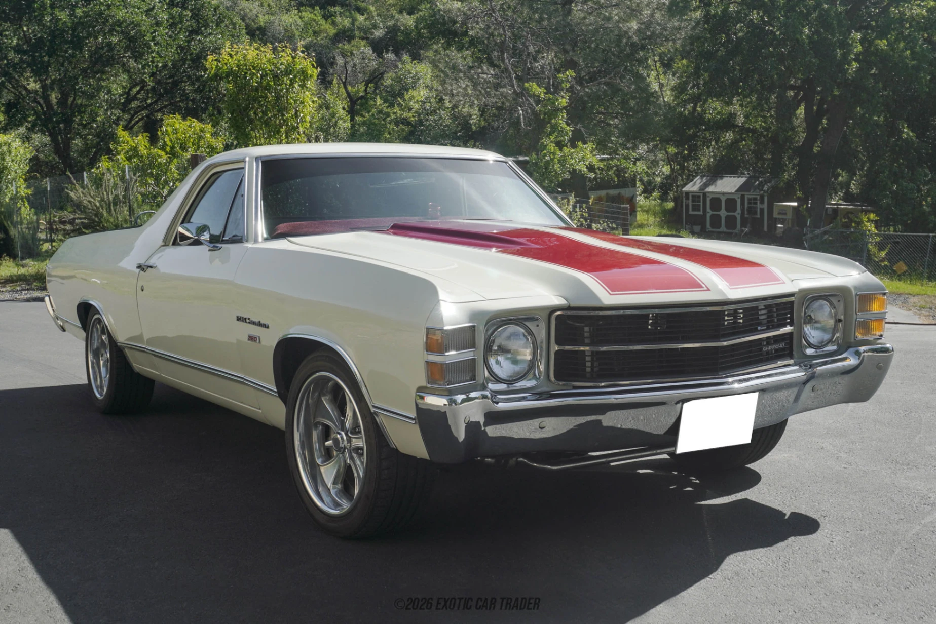 The 1971 Chevrolet El Camino blends muscle car performance with pickup practicality, creating one of the most unique vehicles of its era. Based on the Chevelle platform, the El Camino delivers the same V8-powered driving experience while offering the added versatility of a truck bed. This example, showing 49,490 miles, presents as a clean and tastefully upgraded classic finished in Antique White with distinctive Rosewood Poly/Metallic striping. Powered by a 350ci V8 and paired with a TH350 automatic transmission, it offers a smooth yet capable driving experience, making it an ideal cruiser with plenty of character and usability.