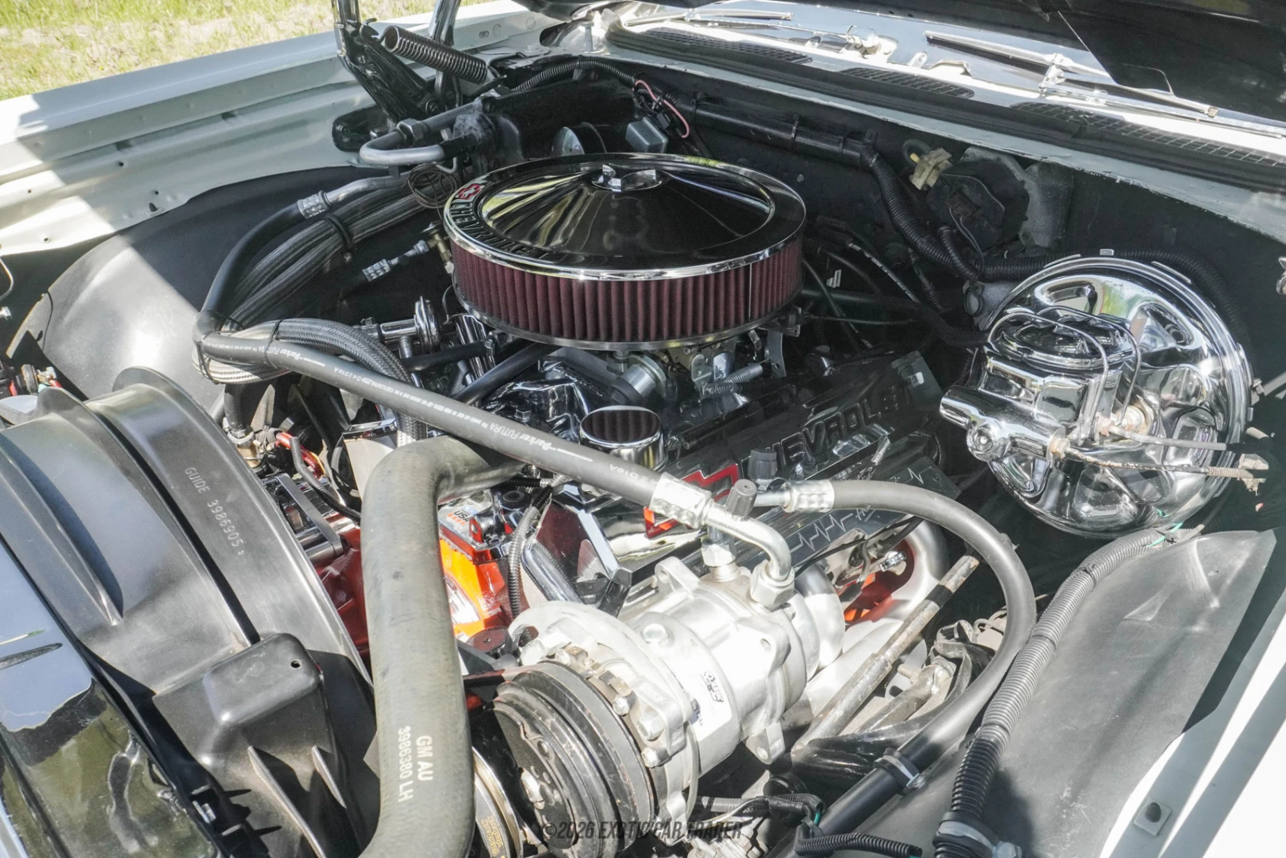 Under the hood sits a 350ci naturally aspirated V8, a small-block Chevrolet engine known for its reliability and broad performance capabilities. Equipped with a 4-barrel carburetor, it delivers solid power and responsive throttle input, making it well-suited for both relaxed cruising and spirited driving. The addition of an aftermarket open-element air cleaner and aluminum radiator improves airflow and cooling efficiency, enhancing overall performance and dependability. Power is routed through a TH350 3-speed automatic transmission to the rear wheels, providing smooth shifts and a classic driving feel. With the added benefit of four-wheel disc brakes, this El Camino offers improved stopping power to match its performance.