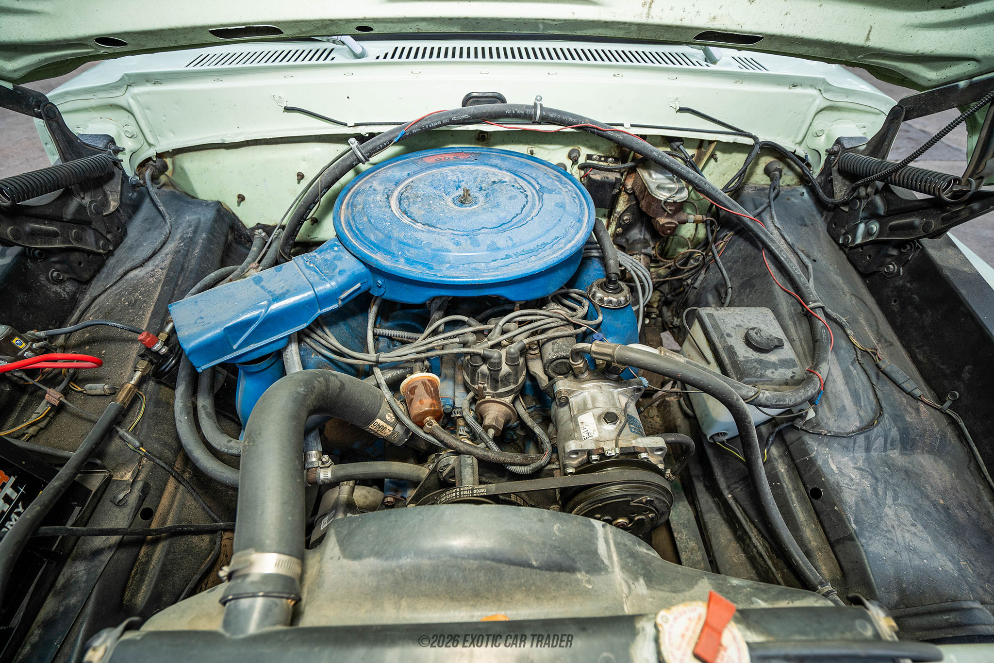 Under the hood sits a 360ci naturally aspirated V8, part of Ford’s FE engine family known for its reliability and strong low-end torque. Equipped with a 2-barrel carburetor, this engine delivers smooth, dependable performance suited for both cruising and light-duty work. Paired with a 3-speed manual transmission, it provides a direct and engaging driving experience that connects the driver to the road. Power is sent to the rear wheels, maintaining the classic truck layout. Built during an era when simplicity and durability were key, this F-100 offers straightforward mechanics that are easy to maintain and enjoyable to drive.