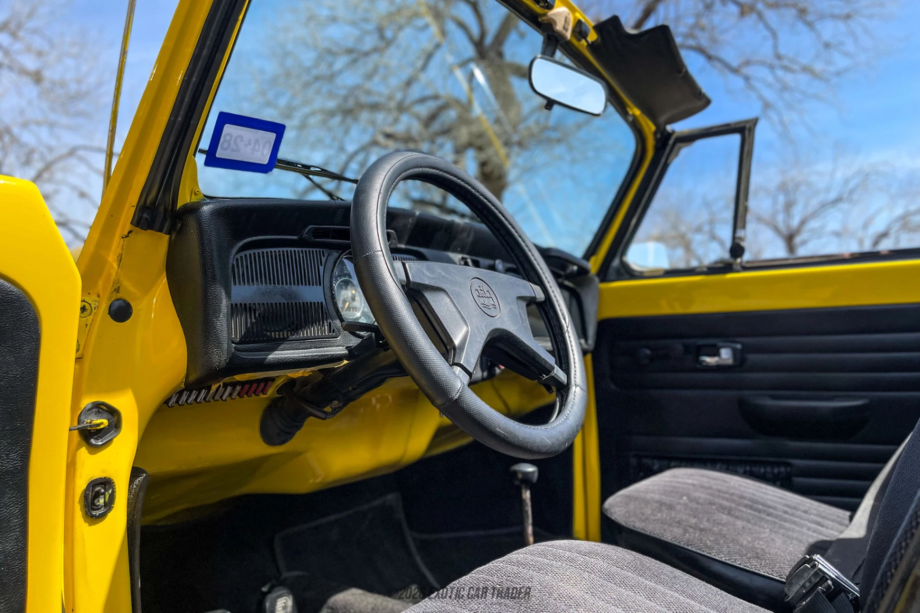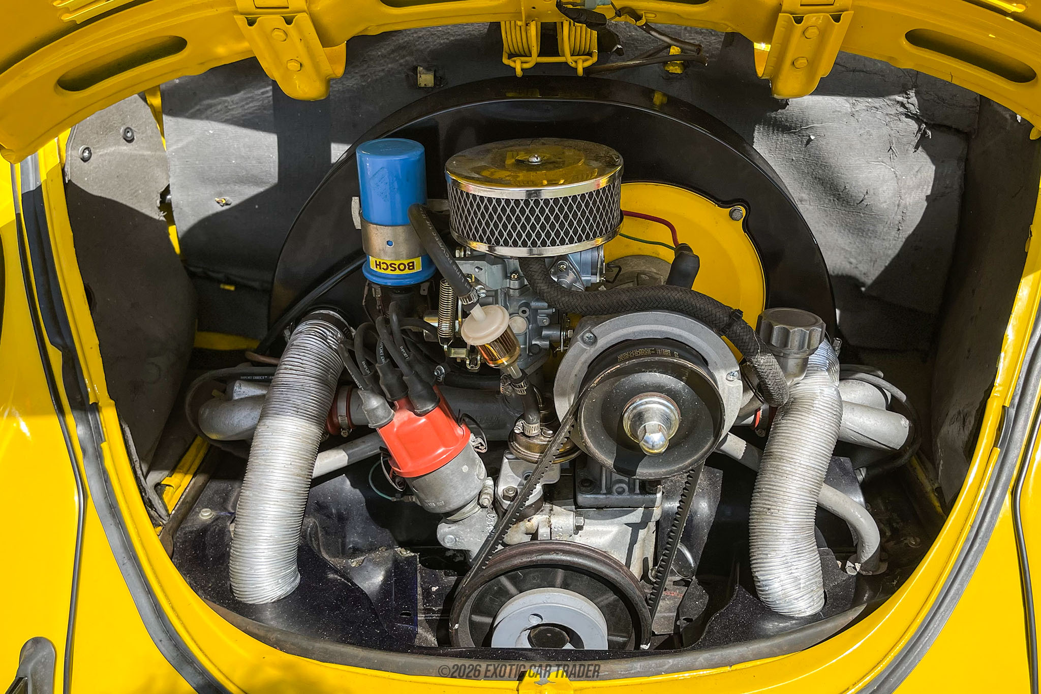 Wearing Texas Rose Yellow paint, this 1972 Volkswagen Super Beetle sports a black canvas top for those open-air drives because why not? Cruising in a hardtop Beetle is nice enough, but drop the top and you can soak in the admiration and appreciation by passers-by even more. This car rides on a set of silver alloy wheels, has chrome bumpers and that inimitable, cutesy face that every Beetle rocks. The black interior of this 1972 Volkswagen Super Beetle can easily accommodate four adults. Alternatively, three children could easily fit in the rear seat, remember, this was, first and foremost, a family car. So, it’s spacious, practical, and well-equipped for its time. This particular car also enjoys a positively luxurious feature in the shape of a radio from Yamaha, replete with a cassette tape player. Why, aren’t we fancy! As for cargo, there’s space under the hood because, remember, in a Beetle, the engine lives out back.