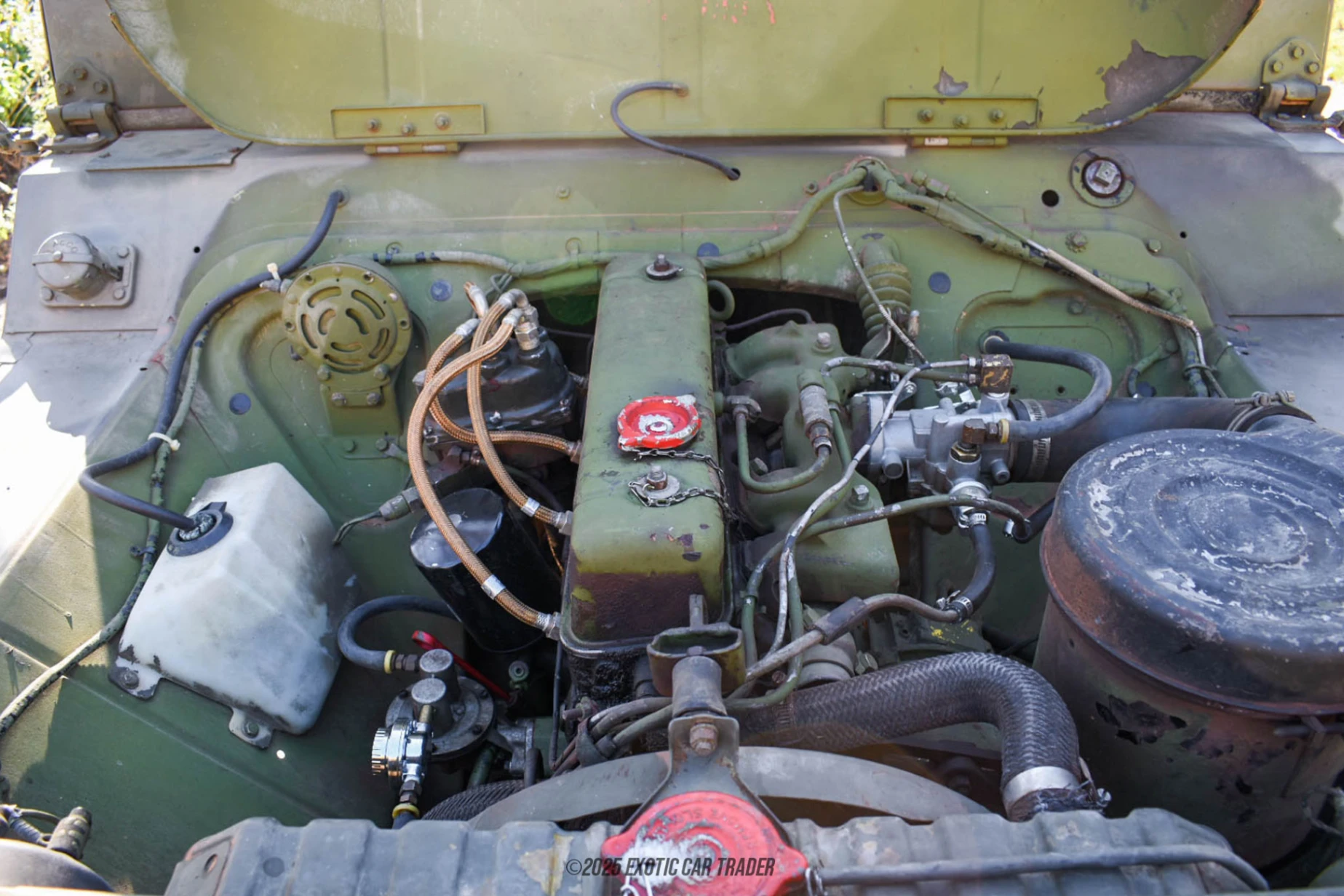 Power comes from the correct naturally aspirated 141ci (2.3L) inline-4 paired to a 4-speed manual transmission & a selectable 4×4 system. The engine bay displays the A2-specific waterproof ignition components, oil-bath air cleaner, Carter YS-950S military carburetor, dual-action fuel/vacuum pump, & the braided fuel/vacuum lines typical of MUTT mechanical architecture. The independent suspension on all four corners—one of the MUTT’s major advantages over earlier Jeeps—provides exceptional off-road articulation. With its simple mechanical layout, dependable drivetrain, and fully authentic military equipment, the M151A2 offers a rugged driving experience that remains true to its service roots.