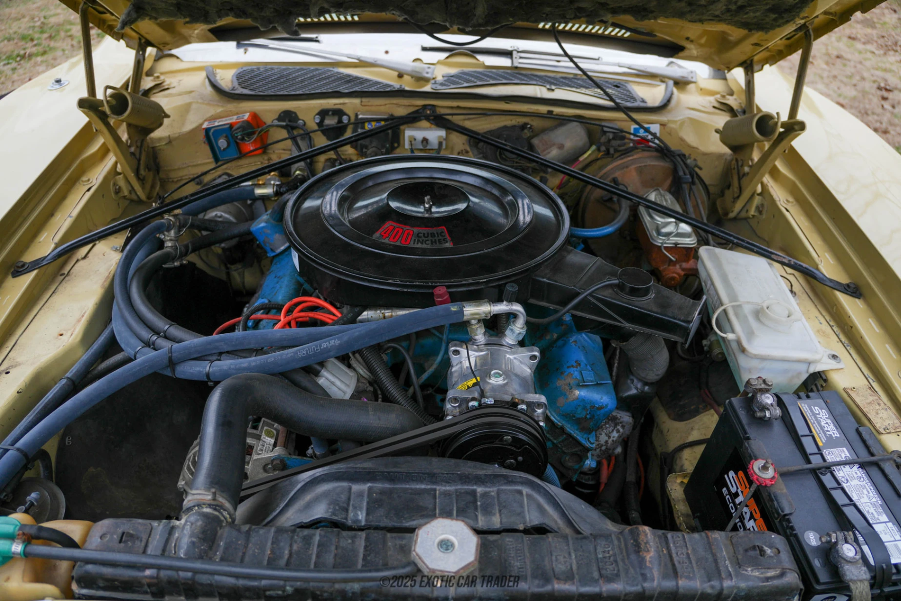 Under the hood sits a naturally aspirated 400ci V8, delivering smooth, torque-rich power well suited to relaxed highway driving and effortless cruising. Paired with an automatic transmission and rear-wheel drive, the drivetrain prioritizes refinement and drivability over high-revving performance. A torsion-bar front suspension, rear leaf springs, and power-assisted steering and brakes further reinforce the Charger SE’s role as a comfortable grand touring coupe rather than a track-oriented machine.
