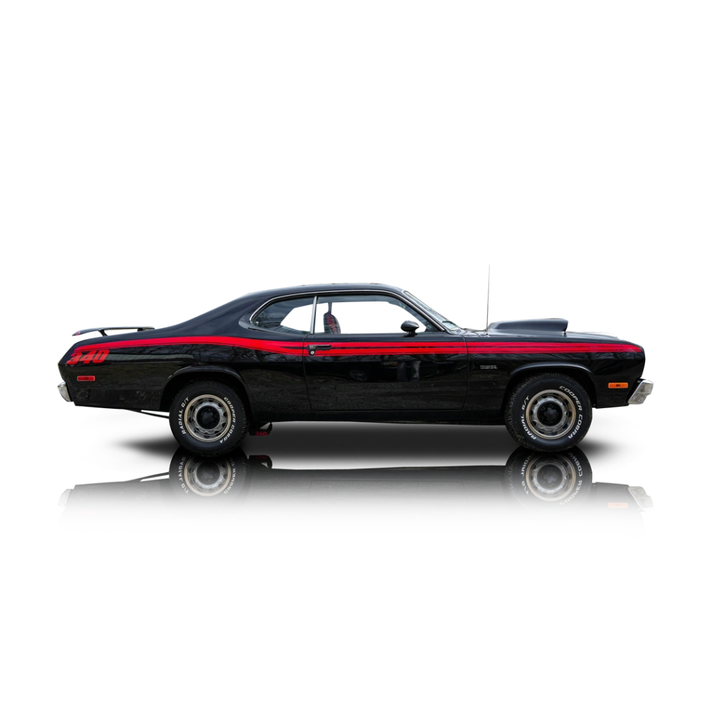 This 1973 Plymouth Duster is now equipped with a rebuilt 360ci V8 under the hood. Of course, the car is rear-wheel drive and uses a 3-speed Torqueflite automatic transmission.