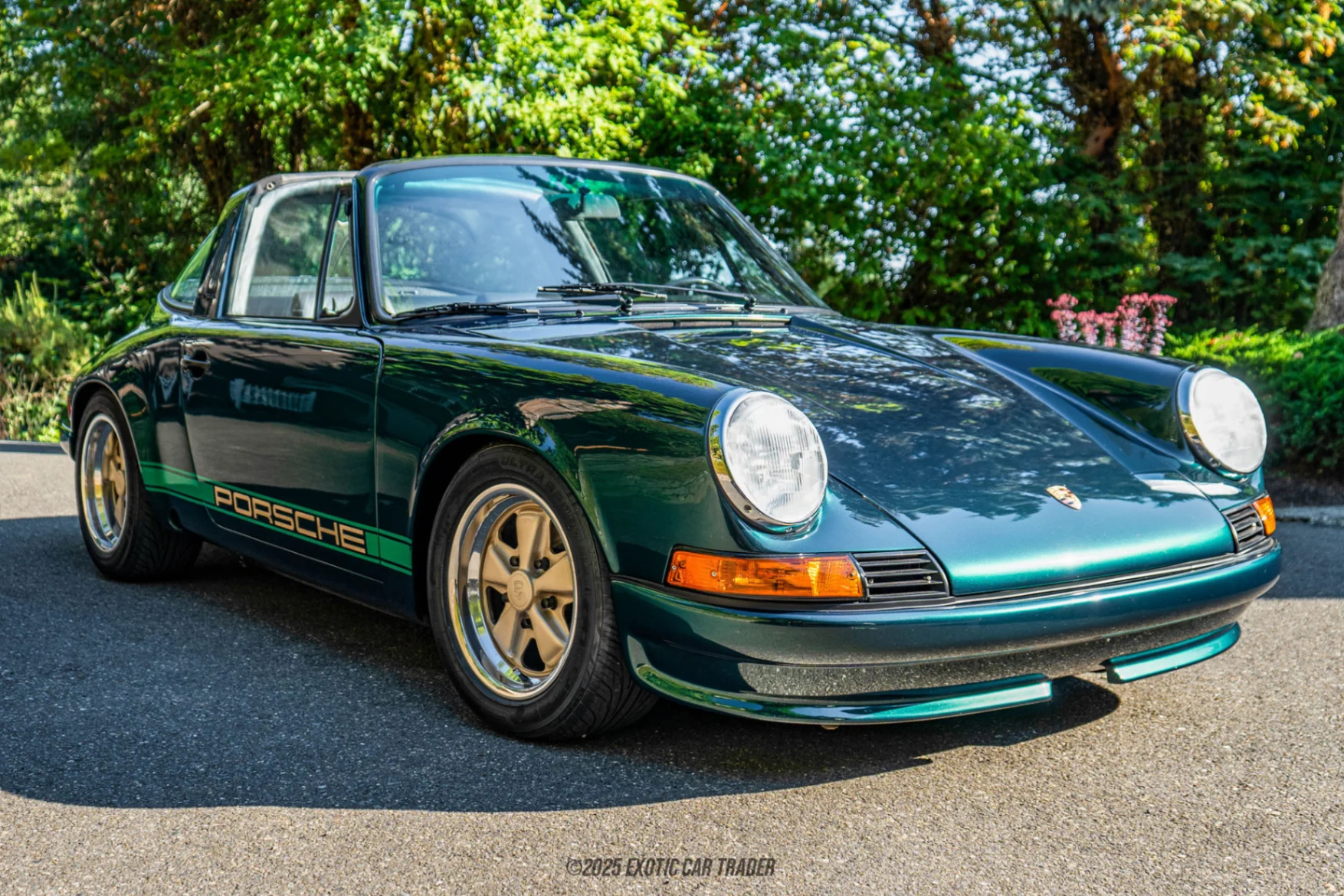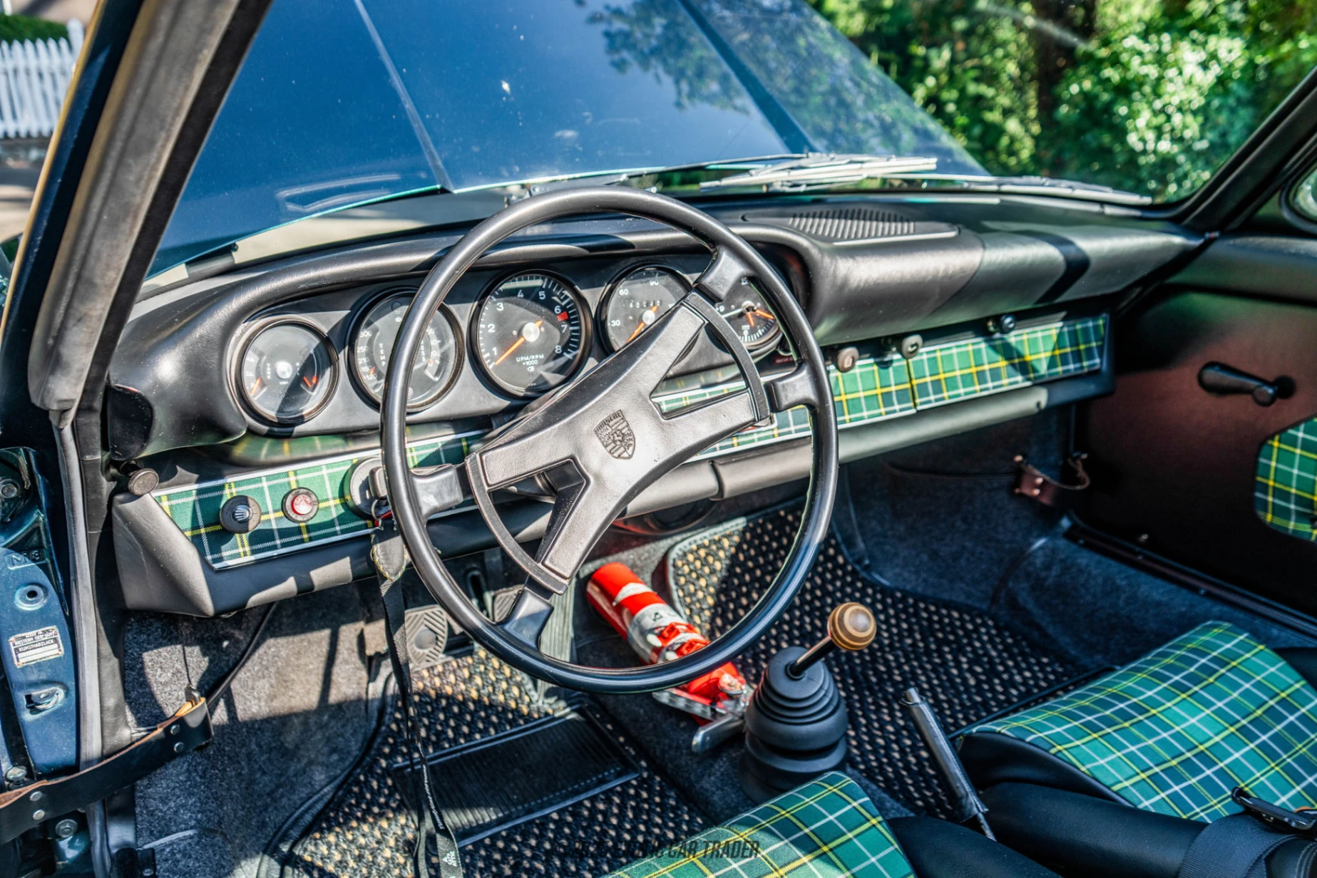 Sporting a metallic green outlook, this 1973 Porsche 911T Targa looks fabulous on its 15-inch Fuchs-style wheels with champagne centers. It’s got Nankang Ultra Sport NS-II tires for better grip when you get a bit excited – which you will when you drive this car. There are steel rear fender flares, Euro-style headlamps, green rocker panel stripes, an S-style bumper fascia, and an RSR-style rear bumper fascia. Then, of course, there’s that removable targa roof panel for a semi-convertible experience without giving up torsional rigidity. The chequered interior of this 1973 Porsche 911T Targa features tartan-style inserts in the door cards and seats. It’s got your classic Porsche 911 two-plus-two layout, and is a Seventies time capsule to behold. If you want to modernize it with a newer stereo, there are some lovely retro-modern units available these days. Otherwise, keep it as-is and enjoy the ambiance of Seventies Porsche motoring.