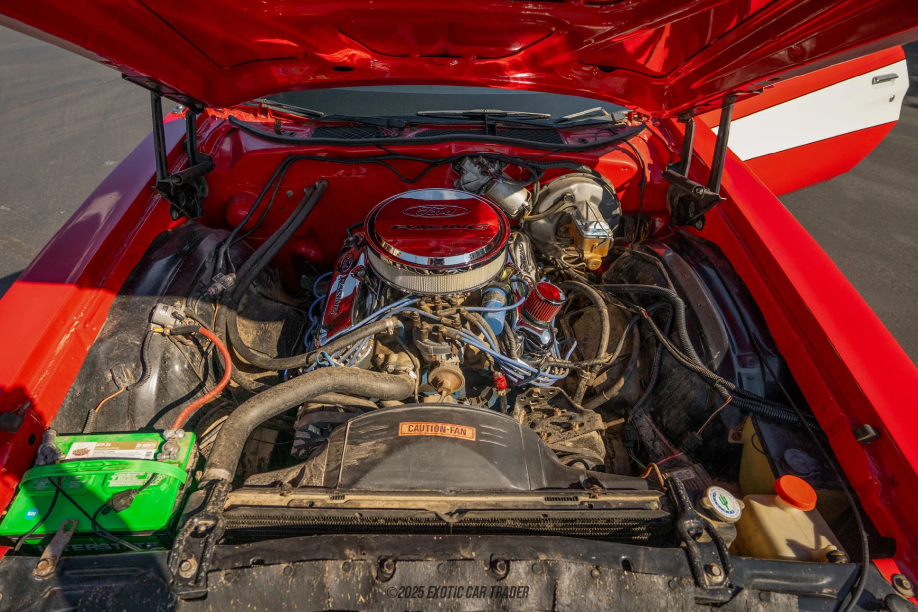 Power comes from a 302ci V8 that has reportedly been bored out and fitted with a Holley 4-barrel carburetor, breathing through custom headers and an aftermarket intake manifold sourced from Ford Racing. Mated to a 3-speed automatic transmission and rear-wheel drive, the drivetrain delivers authentic muscle car engagement.