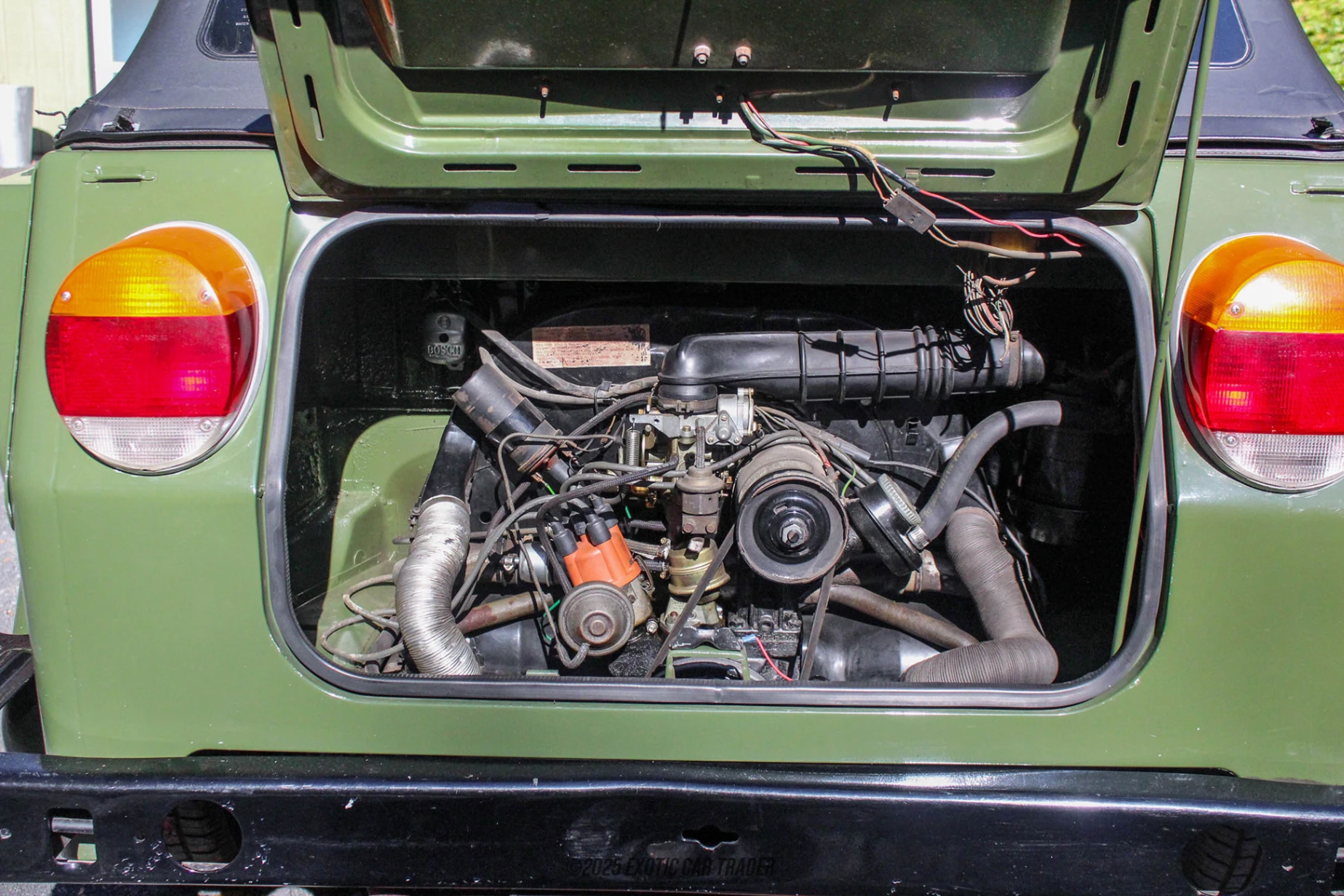 This 1974 Volkswagen Thing packs an air-cooled naturally aspirated flat four. The 1.6-liter unit can also be found in Beetles and Microbuses from the same era. With its friendly purr and easy power delivery, you’ll definitely recognize it in an instant. Power goes to the rear wheels through a 4-speed manual gearbox. There’s also torsion bar suspension, a Solex single downdraft carburetor, front disc and rear drum brakes. All that makes for a vehicle that’s surprisingly easy to drive and won’t annoy other road users.