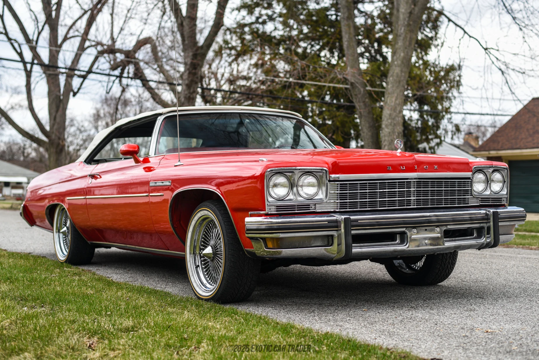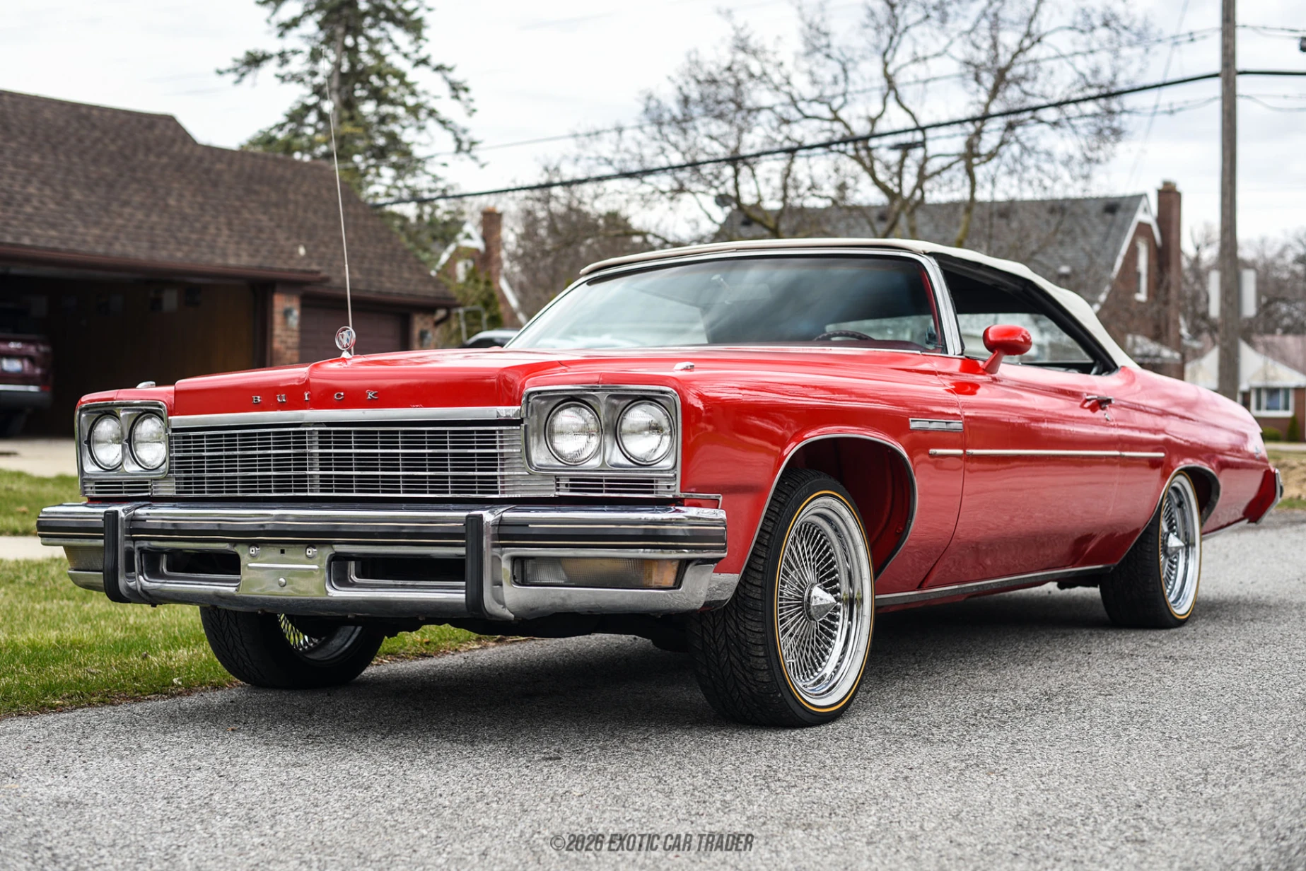 The exterior of this Buick LeSabre Convertible is finished in a vibrant red, complemented by a striking maroon and white interior that creates a classic aesthetic. The vehicle includes a white power convertible soft top, allowing for an open-air driving experience that enhances those warm summer days. Chrome wire wheels add a touch of sophistication and reflect the vintage design cues of the era, establishing a visual appeal that draws attention on the road. Additionally, the seller notes bubbling on the wheel wells; however, this does not detract from the car’s overall charm.