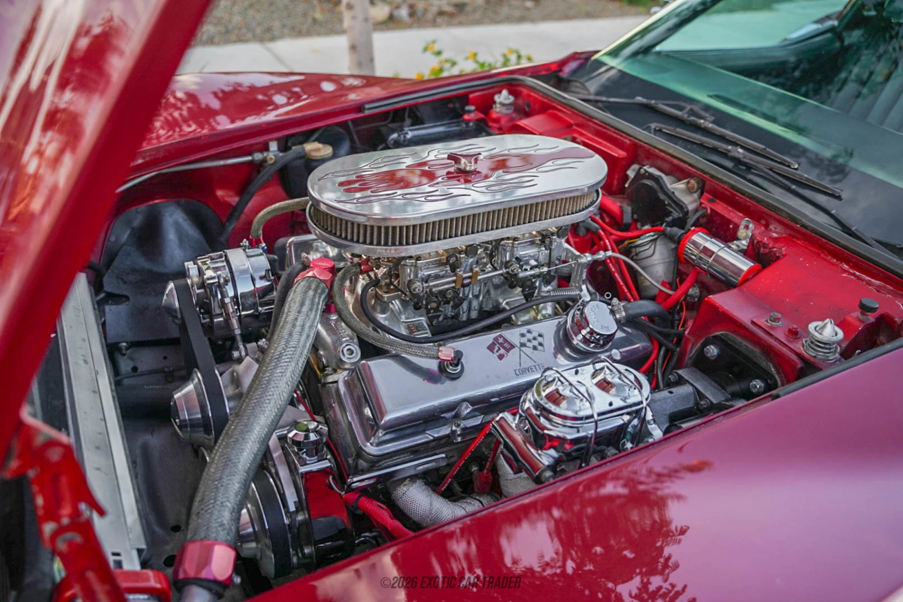At the heart of this Corvette lies a 350ci (5.7L) naturally aspirated V8, a staple of Chevrolet performance throughout the era. This example benefits from dual 4-barrel carburetors, which significantly improve airflow and fuel delivery compared to the original setup, resulting in sharper throttle response and increased performance potential. Supporting upgrades such as an aluminum intake manifold and HEI electronic ignition enhance reliability, efficiency, and ease of maintenance. Paired with a 4-speed manual transmission, this powertrain delivers a raw, engaging driving experience, sending power to the rear wheels in true classic American sports car fashion.