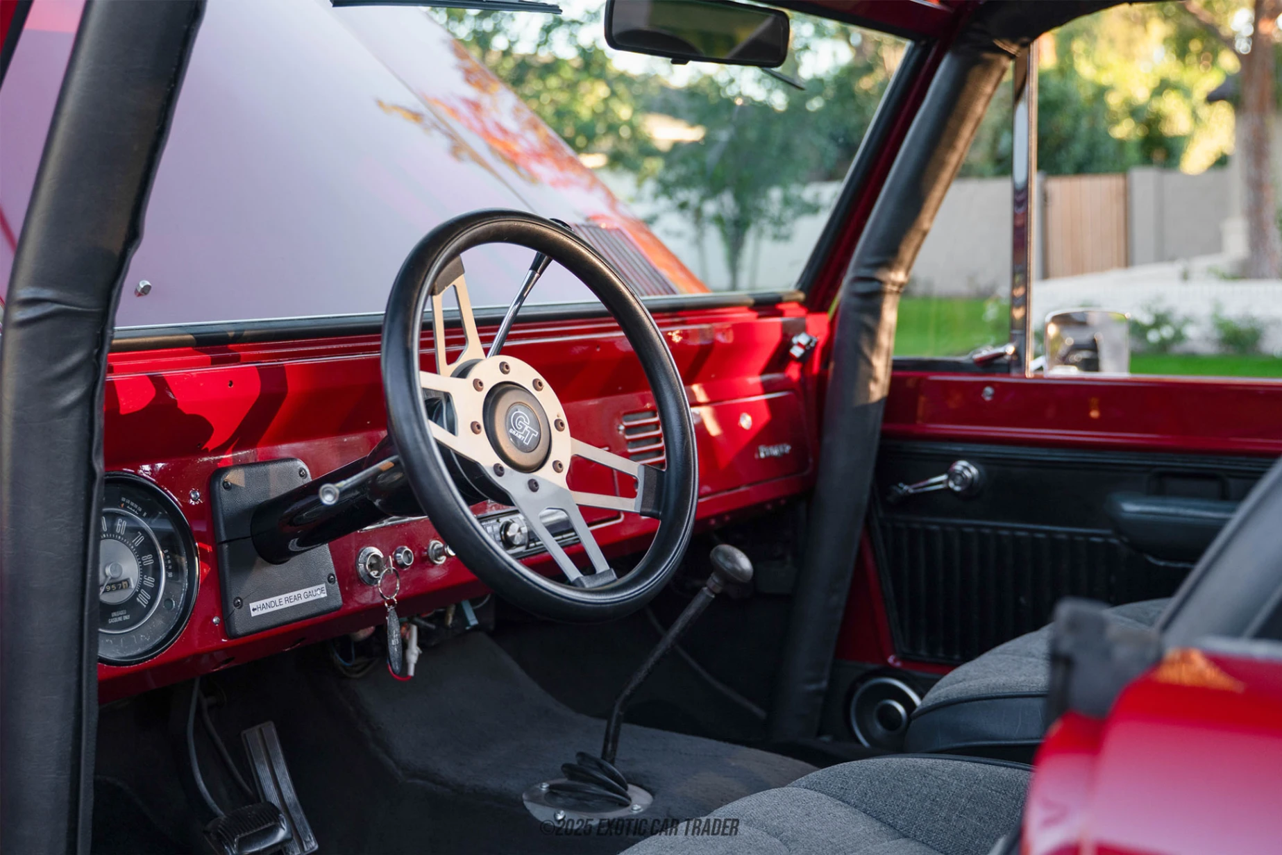 With a 302ci V8, this 1975 Ford Bronco is definitely well-endowed to tackle any terrain. The engine benefits from upgraded plugs and timing, as well as a dual exhaust system. Morevoer, a dual fuel tank system is also present for extended range between fill-ups. Power is sent to the wheels via a 3-speed automatic transmission. The vehicle can operate in rear-wheel drive mode, or you can manually engage the front axle and dual-range transfer case too.