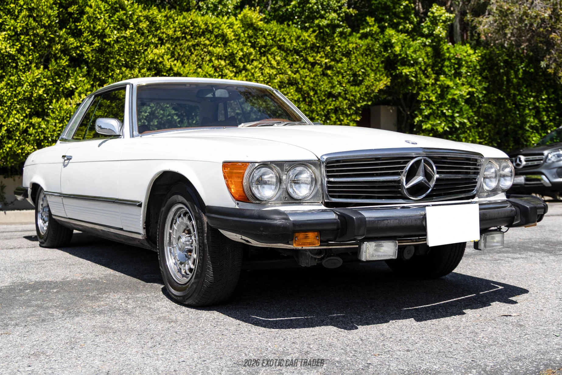 The exterior of this 1975 Mercedes-Benz 450 SLC is finished in white, a color that highlights the car’s crisp body lines and pillarless coupe design. The long hood, short rear deck, and subtle chrome accents give it an unmistakable presence rooted in 1970s luxury motoring. Riding on 14-inch steel wheels, the car maintains a factory-correct stance that aligns with its original grand touring intent, offering a composed and comfortable ride. The interior of this 1975 Mercedes-Benz 450 SLC is trimmed in tan and showcases the brand’s signature blend of durability and understated luxury. Zebrano wood accents run across the dashboard and center console, adding warmth and contrast to the cabin. Features such as automatic climate control, power windows, central locking, and cruise control reflect the advanced nature of Mercedes-Benz engineering for its time. The wood steering wheel adds a touch of vintage sportiness, while the Kenwood head unit provides a subtle modern upgrade for improved audio functionality.