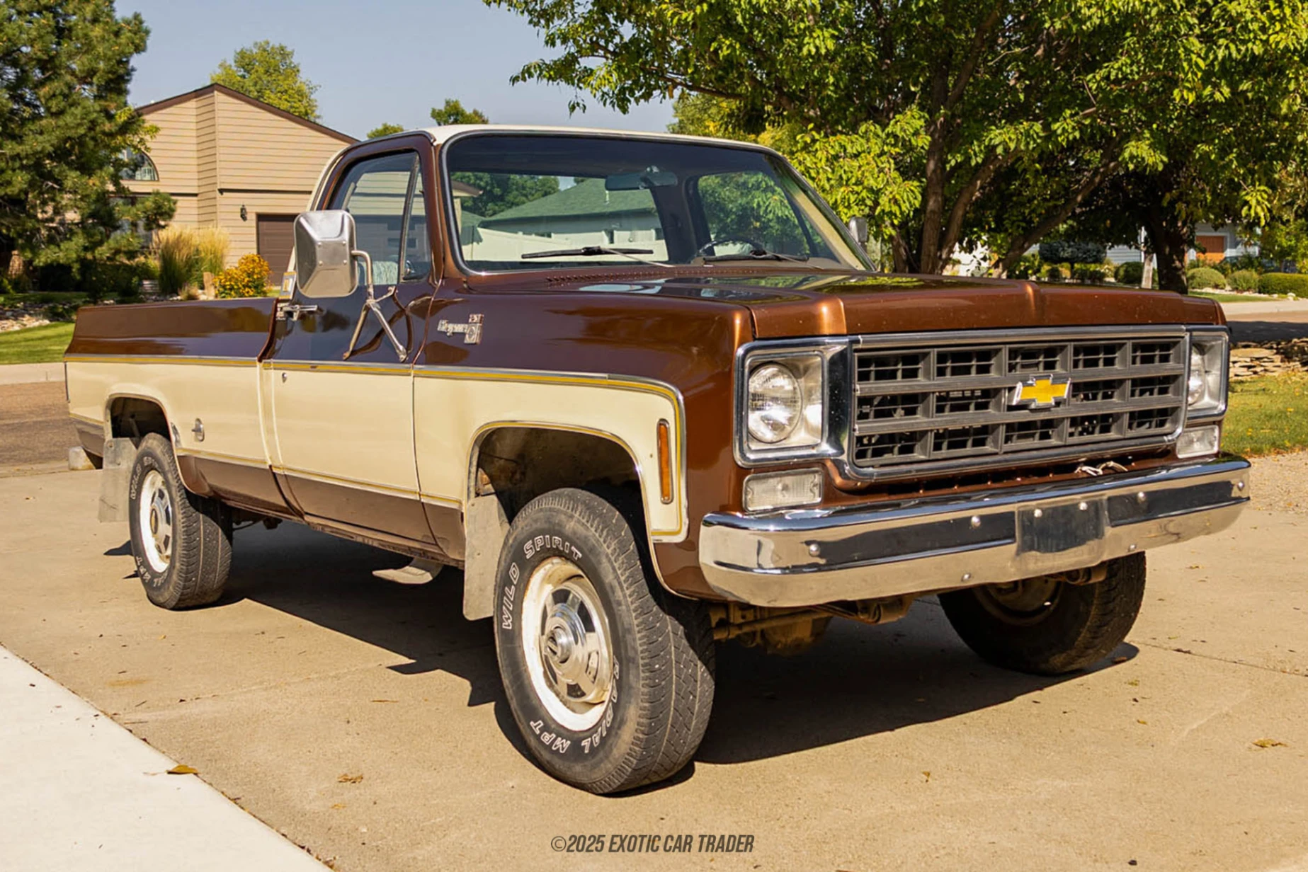 Wearing a classic two-tone Brown and Yellow exterior, this 1977 Chevrolet K20 Cheyenne Camper Special showcases the bold styling that defined Chevrolet trucks of the time. Chrome accents and factory badging add authenticity, while the 4x4 stance gives it the commanding presence expected of a heavy-duty pickup. Inside, the brown interior is outfitted with wood-grain trim and matching carpeting, offering a period-correct look that reflects the premium Cheyenne trim level. Modern touches such as Power Acoustik speakers pair with the original AM/FM radio and cassette player for a blend of nostalgia and usability.