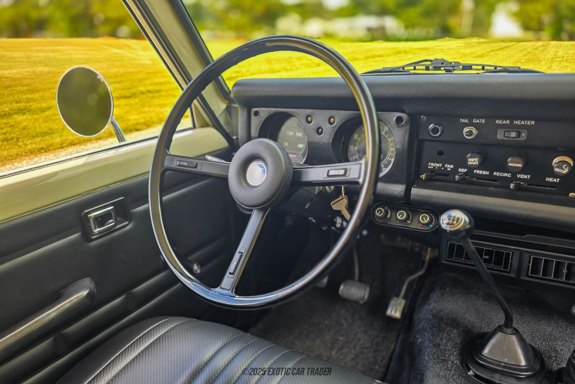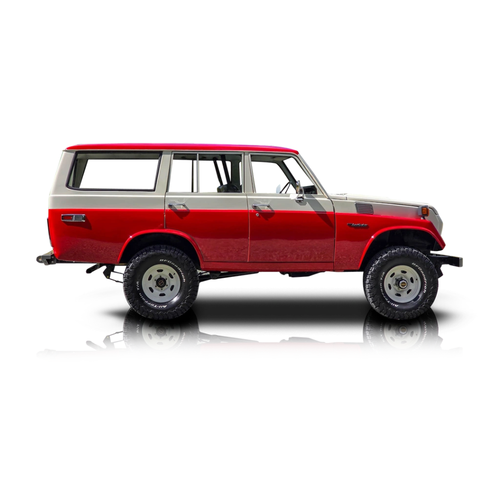 Wearing a two-tone red and white color scheme, this 1978 Toyota Land Cruiser FJ55 sits high on its white-rimmed all-terrain tires from BF Goodrich, and is ready for action. Take a look at its smooth lines and curves, as well as its elongated profile which showcases its more family-friendly proposition. It’s a classic SUV that will definitely turn heads, but can also cut it in the jungle, sand, mud, snow or anywhere else you choose to take it. The interior of this 1978 Toyota Land Cruiser FJ55 comes in black and looks near factory fresh after restoration. Seating five adults in comfort and space, the vehicle also offers ample cargo capacity, making it a great camping companion. We’re told that there’s a Gen V Vintage Air heating and air conditioning system in place to make the cabin more comfortable on chilly or hot days. Everything else remains true to stock form, from the analog gauged dashboard, to the thin-rimmed steering wheel, wind-up windows and refreshing lack of digital devices. This is a vehicle that’s designed to be tough, reliable, and simple to fix if things do go amiss.