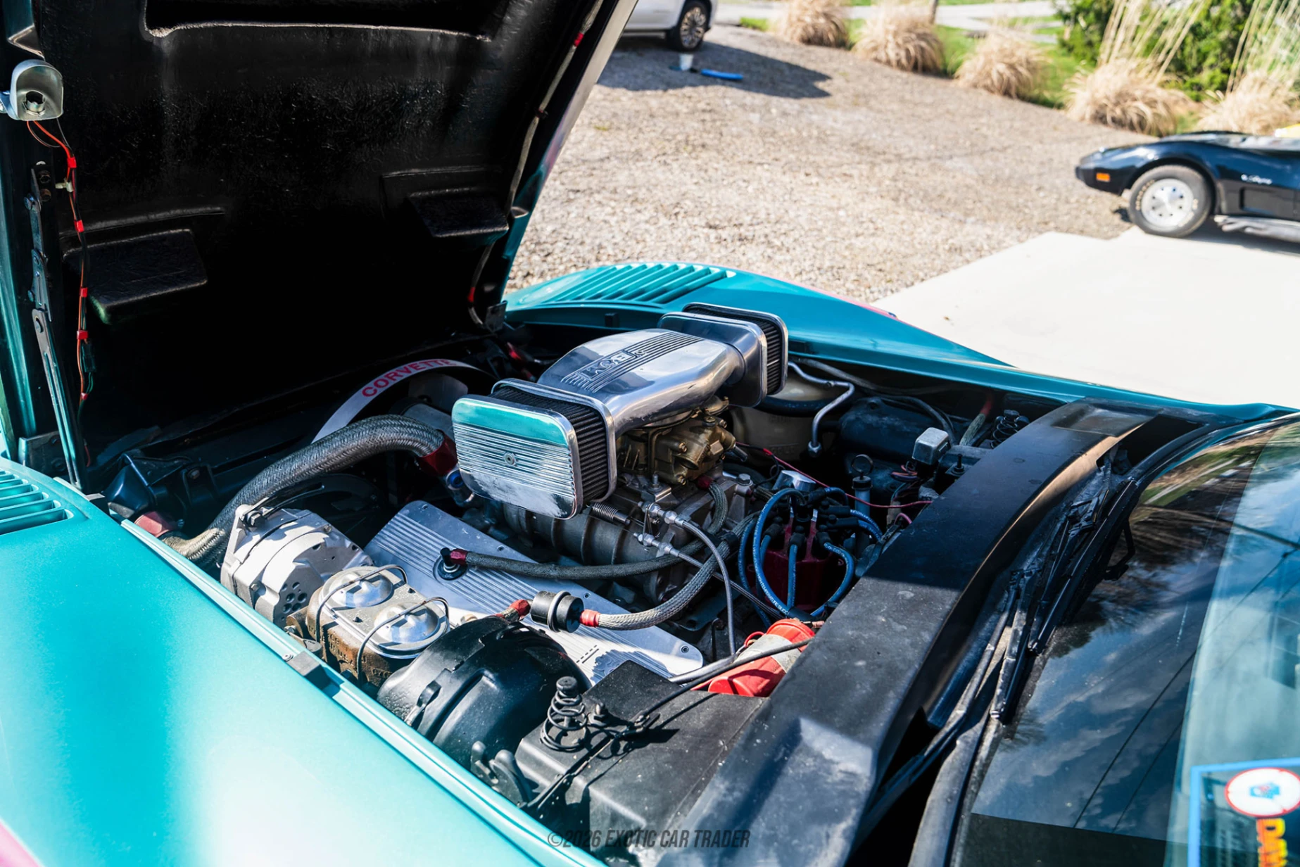 The exterior of this 1981 Chevrolet Corvette is finished in a striking teal with eye-catching custom graphics that perfectly complement its dramatic widebody design. The flared fenders, integrated rear wing, and sculpted side skirts give the car an aggressive, almost concept-car-like presence, while the custom hood with intake scoop and heat extraction vents adds both visual impact and functional appeal. Sitting on aftermarket wheels, this Corvette commands attention from every angle and captures the bold styling trends of its era. The interior of this 1981 Chevrolet Corvette features a clean gray color scheme with supportive bucket seats that maintain the car’s sporty character. The cabin retains its driver-focused layout, enhanced by a woodgrain center stack that adds a touch of classic Corvette charm. A JVC head unit brings modern audio functionality, while the removable T-top panels allow for an open-air driving experience, blending comfort with the unmistakable feel of a vintage American sports car.