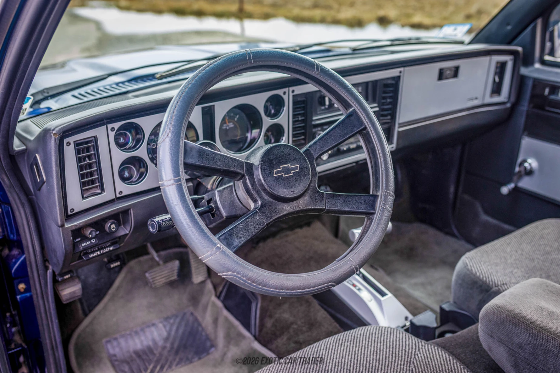 The exterior of this 1982 Chevrolet S-10 Pickup is finished in Metallic Blue, a color that pairs well with the truck’s custom enhancements and clean presentation. It features an aftermarket ground effects kit that gives it a lower, more aggressive stance, complemented by an integrated tonneau cover with a built-in spoiler for a sleek, streamlined look. The front end has been converted with a GMC-style grille and badging, adding a distinctive visual twist, while the Corvette-style hood scoop hints at the performance upgrades beneath. Aftermarket wheels complete the stance, and updated weatherstripping and moldings help maintain a refreshed and well-kept appearance overall. The interior of this 1982 Chevrolet S-10 Pickup is trimmed in gray cloth and enhanced with thoughtful upgrades that elevate both comfort and functionality. An LMC headliner with integrated speakers brings improved audio capability while maintaining a clean, factory-inspired look. The addition of a Hurst shifter adds a touch of classic performance heritage to the cabin, reinforcing the truck’s driver-focused nature. Overall, the interior strikes a balance between original simplicity and subtle customization, making it a comfortable space that still reflects the truck’s performance-oriented personality.