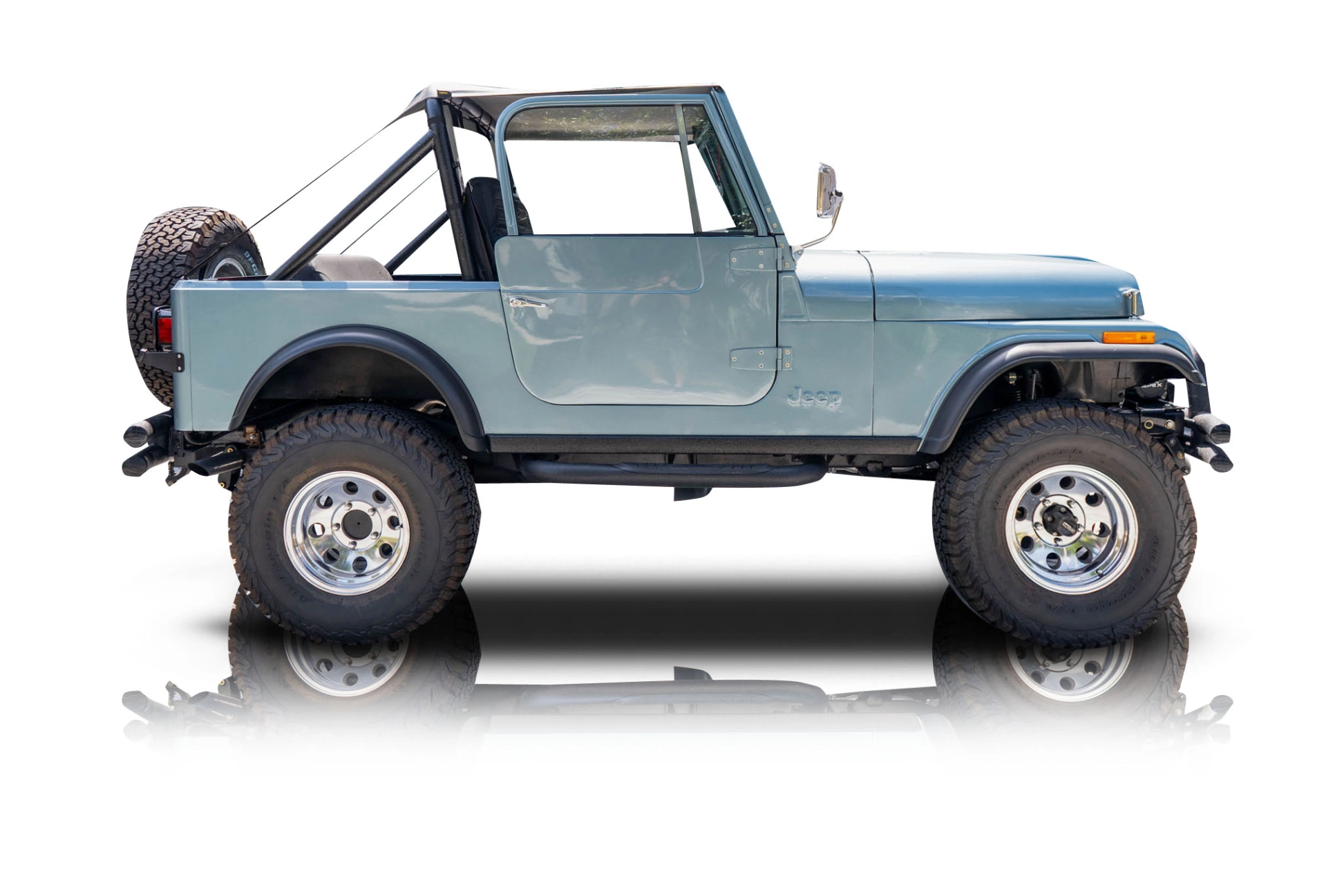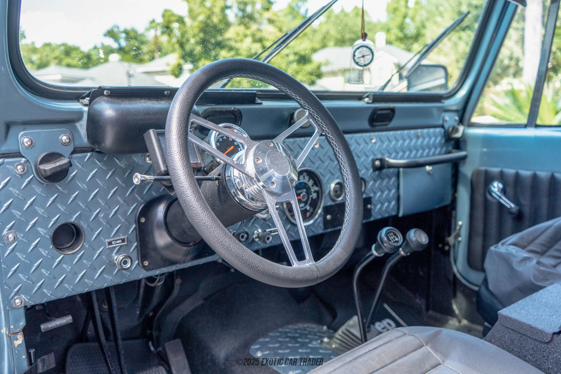The Metallic Blue exterior highlights the rugged, iconic lines of the CJ-7, complemented by aftermarket wheels and a refreshed stance thanks to updated suspension. The black interior is simple, purposeful, and in line with Jeep tradition, offering durability and ease of use. Details like the clean wiring from a Painless harness and the restored fit and finish showcase the attention to detail that went into the restoration.