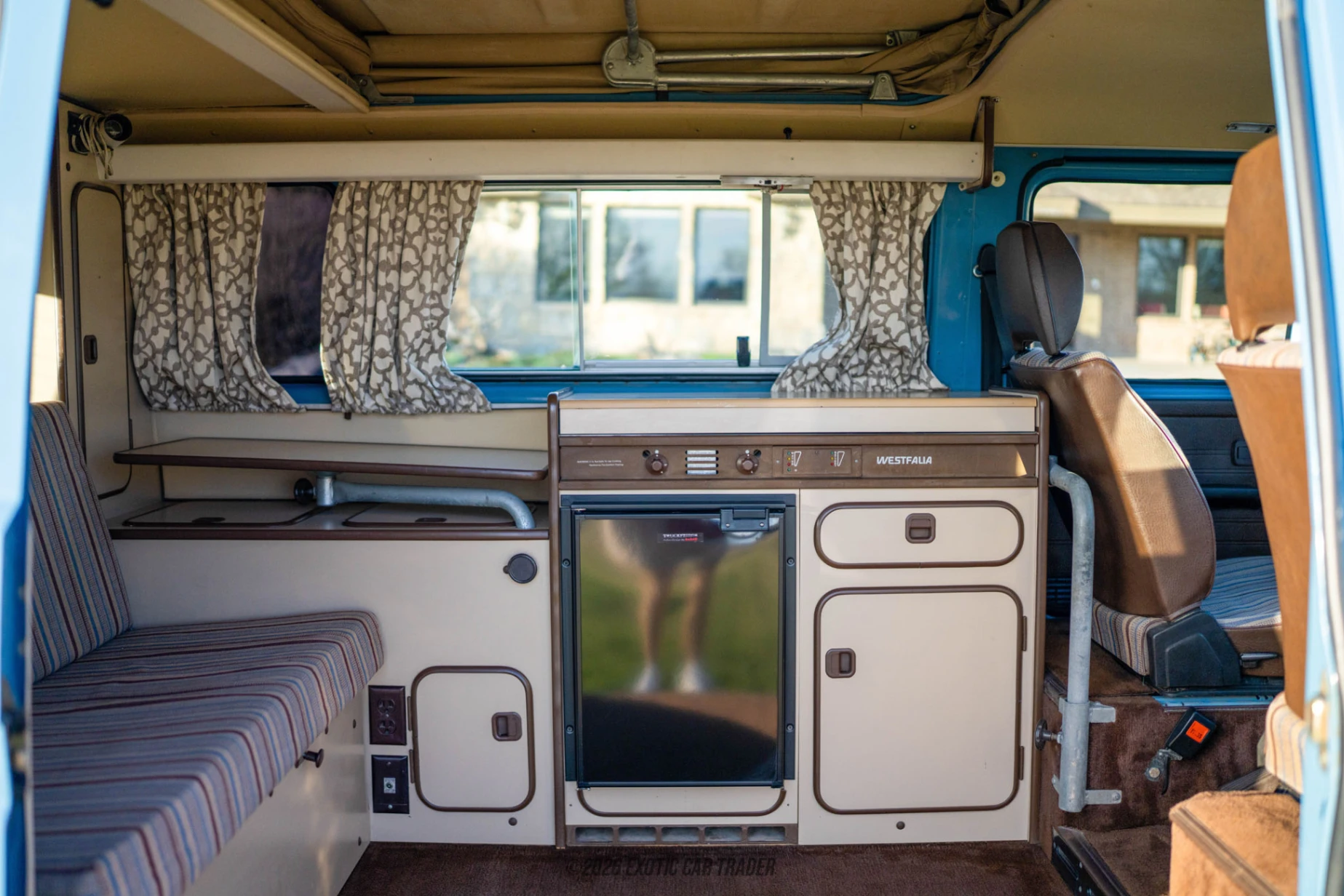 This 1982 Volkswagen Vanagon features an eye-catching blue exterior that exudes a classic aesthetic. The vehicle's unique shape and design make it instantly recognizable, a true testament to Volkswagen's engineering legacy. Inside, you will find a warm brown interior that complements the exterior color beautifully. The seating area is designed for comfort and practicality with ample storage solutions, making it perfect for a variety of adventures. The blend of exterior and interior colors captures the essence of the era, appealing to both vintage enthusiasts and trendsetters alike.