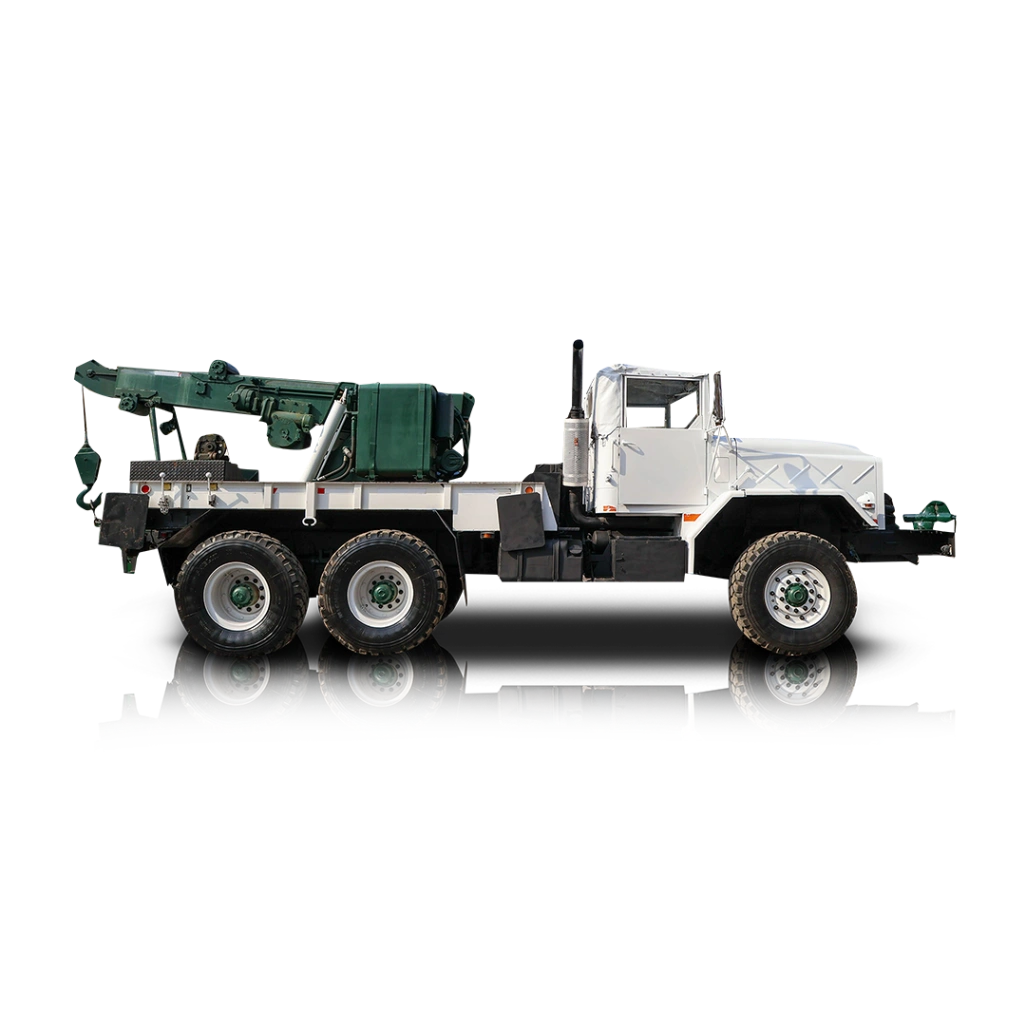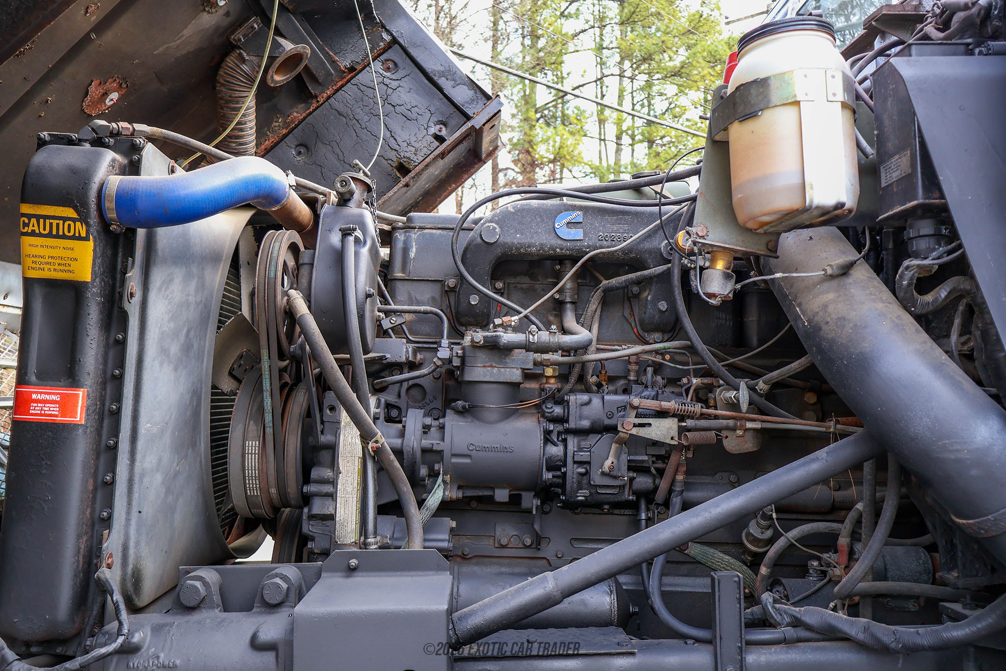 Mechanically, the M936 is built around a Cummins naturally aspirated diesel inline-six paired with an Allison automatic transmission, sending power through a robust 6×6 drivetrain. This configuration provides exceptional torque, reliability, and off-road capability. The heavy-duty chassis supports the dual winch setup and the 55,000-lb-rated crane, making this truck capable of serious recovery work. Air-over-hydraulic brakes, power steering, and military-grade suspension components ensure controlled operation despite the vehicle’s size and weight. Designed for service, recovery, and endurance, this M936 remains a formidable piece of military engineering.