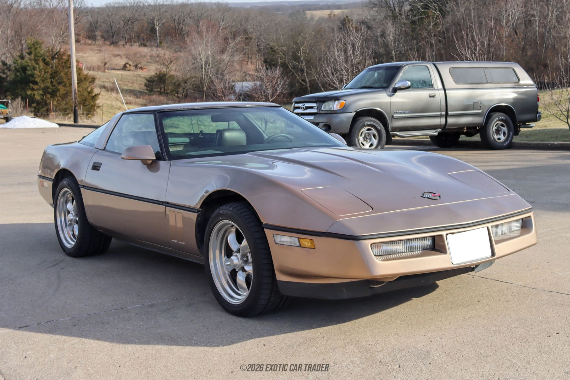 Wearing a nice, subtle gold paint job, this 1984 Chevrolet Corvette Coupe is truly space age, even in 2026. Its long and low-slung design is carried forward on a set of silver aftermarket wheels, while the car’s iconic pop-up headlamps are there for you to enjoy. Then, when you pop the hood and see how it opens from the front, the car’s silhouette becomes even more spacey. The two-seat interior of this 1984 Chevrolet Corvette Coupe comes in light brown. Check out those LCD gauges that were truly eye-opening back in 1984, and still look impressive today. The car has a trip computer, power windows, air conditioning and all the conveniences you’d expect from an Eighties flagship automobile. It’s also been upgraded with a more modern head unit. If you pop the rear glass liftback, you can find the original Delco by Bose speaker system right there!