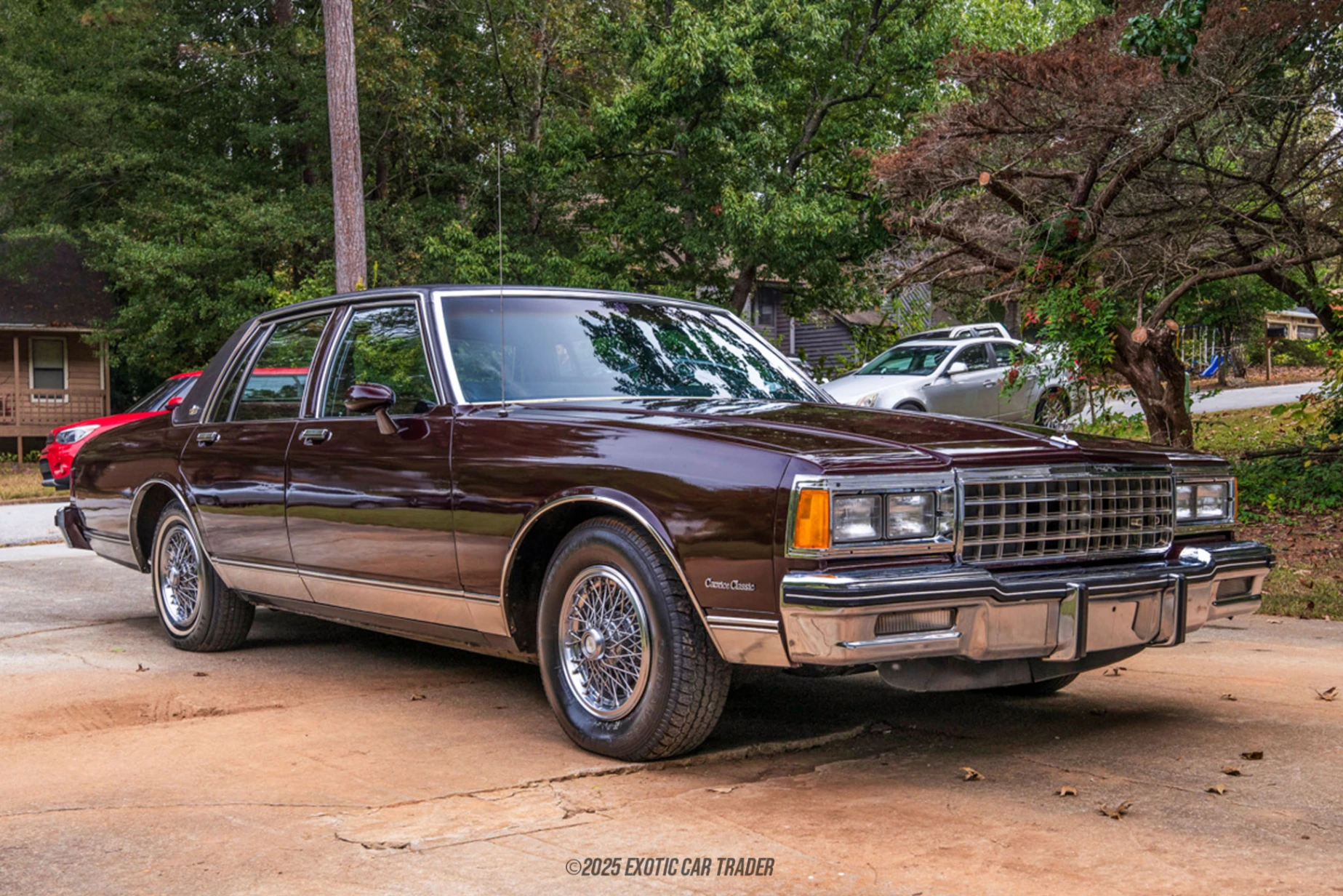 This 1985 Chevrolet Caprice Classic showcases the boxy style that defined Eighties cars, and comes to you in Deep Maroon Metallic. The car’s quad headlamps, wire-style wheels and chrome lower details are quite interesting, as while chrome bumpers are pretty common from the time, have you seen chrome that literally wraps around the entire lower part of the car? You’ve also got a hood mascot at the front, while the rear lamp cluster is interesting too, a trio of prominent red squares that takes up nearly all of the available real estate there. The deep maroon velour interior of this 1985 Chevrolet Caprice Classic is very Eighties, and you can almost feel yourself sinking into its amply-cushioned seats as you see our photos. This car seems to have quite a high specification, as you’ve got air conditioning and heating, cruise control, and even a Pioneer aftermarket head unit installed low down in the center console. The original radio with auto reverse cassette player with five-band graphic equalizer remains in situ, so if you’re a fan of classic car radios, you’ll be thrilled. Plus, trunk space is an impressive 20 cubic feet which is more than most full-size cars of today!