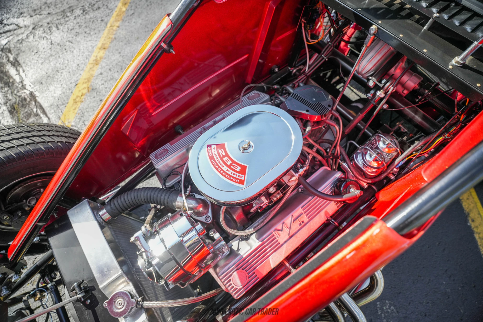 The exterior of this 1985 Trevis Sprint Car is finished in a striking red and features a fully exposed, open-wheel layout that immediately communicates its racing DNA. The custom fabricated body panels wrap around a lightweight tube chassis, leaving much of the suspension and mechanical components visible, just like a traditional sprint car. Its compact proportions, aggressive stance, and side exit exhaust further reinforce its motorsport roots, making it unlike anything else on the road. This is a vehicle that draws attention wherever it goes, whether parked or in motion. The interior of this 1985 Trevis Sprint Car is a minimalist, race-focused environment finished in black and aluminum. Designed with function over comfort, it features a quick-release steering wheel, lap belts, and an aftermarket gauge cluster to keep the driver informed. The layout is tight and purposeful, emphasizing driver engagement and control rather than luxury. Every element inside reflects its racing origins, offering a cockpit-like feel that enhances the overall driving experience.