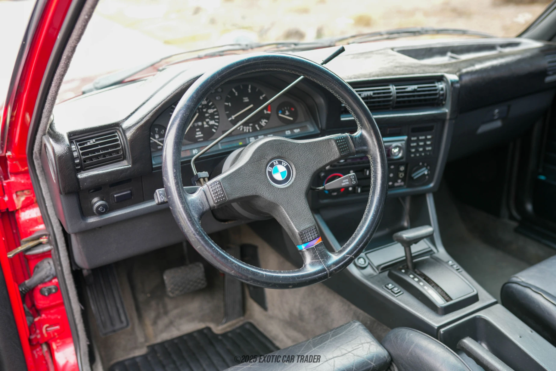 Cinnabar Red is what this 1986 BMW 325es presents itself in, replete with the signature Hoffmeister Kink in the C-pillar that many hard-topped BMWs are renowned for. This car rides on a set of 14-inch alloy wheels of the popular and fondly named Basketweave design that are synonymous with Eighties BMWs. Up front, you’ve got quad circular halogen headlamps framing a right-sized kidney grille – yes, we know many people feel that the grille is way too large on modern BMWs. The E30 era does it right. The interior of this 1986 BMW 325es comes with black leather seats and an M-Technic style 3-spoke steering wheel. It’s suitably well equipped for an Eighties car, with power windows, power locks and air conditioning. You’ve also got the desirable trip computer in the dashboard that shows you information such as fuel consumption, outside temperature, driving range and more. You’ll also appreciate the newer Kenwood head unit as it adds CD playback capabilities with MP3 decoding as well. Cruise control is another neat feature.