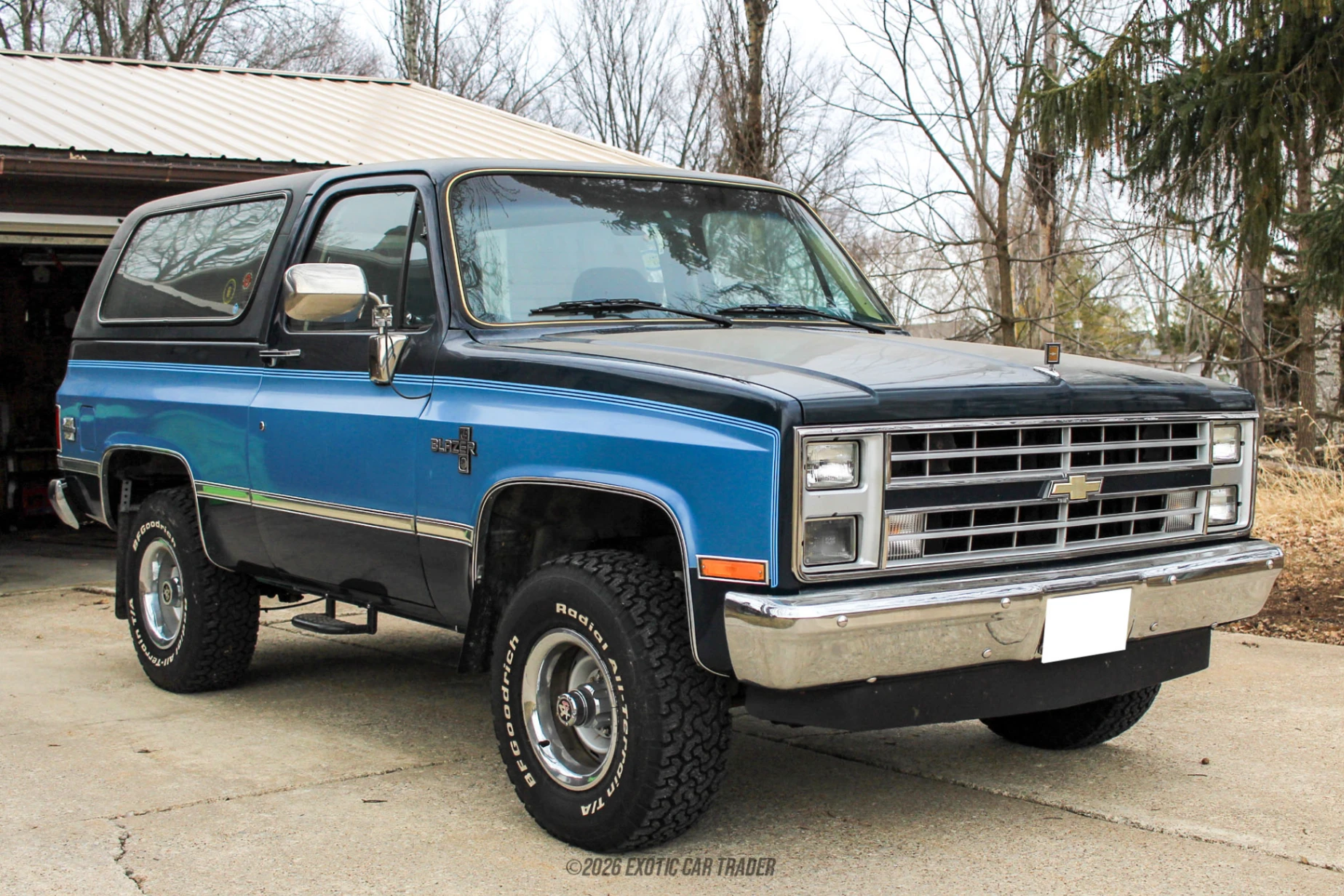 Now this 1986 Chevrolet K5 Blazer is a proper Sport Utility Vehicle! Just look at its two-door, short-wheelbase stance, all wrapped up nicely in a sleek two-tone blue paint scheme! The vehicle rides on a set of silver wheels with proper BF Goodrich All-Terrain T/A tires. It’s got side steps to aid entry and exit, because the passenger cabin is fairly high, since, as we said, it’s a proper SUV! Ground clearance is ample, while the flat sides and large door mirrors help with maneuvering in the rough stuff. Dual headlamps and some chrome here and there also add a touch of flair. The dark blue interior of this 1986 Chevrolet K5 Blazer can easily take four adults on plushly padded seats covered in grippy fabric. Fabric is great for when you’re out and about in the rough stuff, as you don’t slide around while traversing uneven terrain. This vehicle packs amenities such as air conditioning, a Kenwood radio with cassette tape player, some Allison aftermarket gauges and even a Cobra CB radio to help you communicate in areas where 4G and 5G reception aren’t present. Because when the complex digital stuff fails, back to basics is always the best way to go about things.