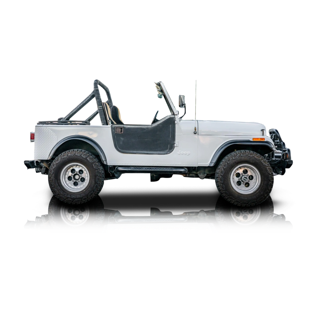 This 1986 Jeep CJ-7 presents as a classic, purpose-built off-roader finished in white with black accents and open-air utility. Its exterior condition, bed-lined cargo area, and visible mechanical updates suggest a driver-focused CJ tailored for trail use. The vehicle maintains the iconic CJ silhouette while incorporating functional upgrades such as front locking hubs, a GT Grant steering wheel, and updated seating upholstery. Overall, it delivers the rugged, analog driving experience the CJ is known for, enhanced with practical modifications for durability and off-road capability.