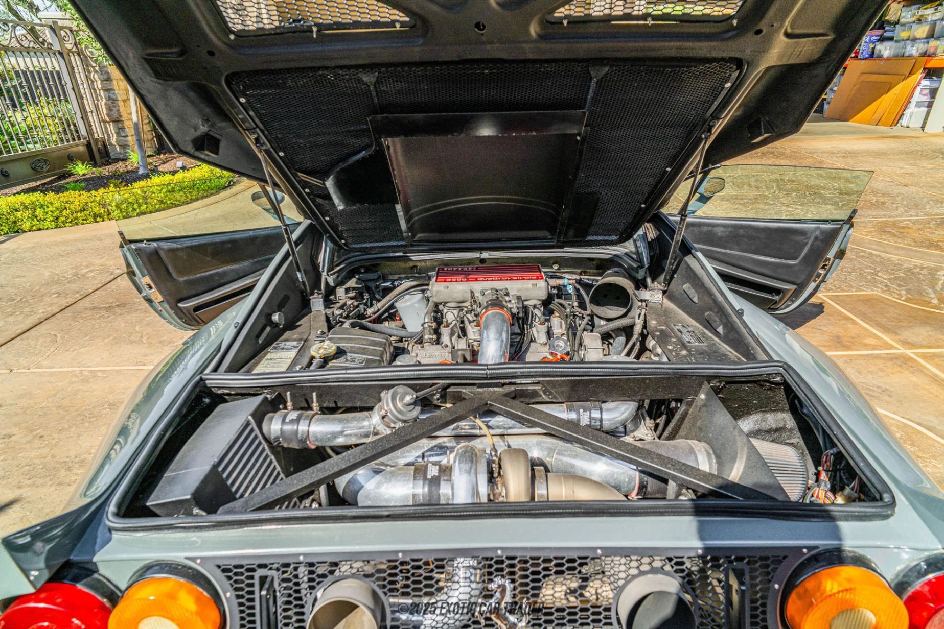 Beneath the rear deck lies a heavily reworked 3.2-liter V8 fitted with a Xona Rotor X3C turbocharger, recently removed and serviced by Boost Lab, Inc. Supporting upgrades include Tial Sport blow-off valves and wastegates, a new oil scavenge system, and fabrication by Eric Cheney of Voodoo Engineering. The turbo setup features small-frame ball bearing internals, piston ring GT30R and T2/T25 components, and a VSR-balanced CHRA, bringing reliability and precision to its forced-induction performance. A set of TubiStyle headers and a straight-pipe exhaust amplify both output and soundtrack. Power is delivered through a 5-speed manual gearbox to the rear wheels, ensuring an authentic Ferrari driving experience despite the extensive modifications.