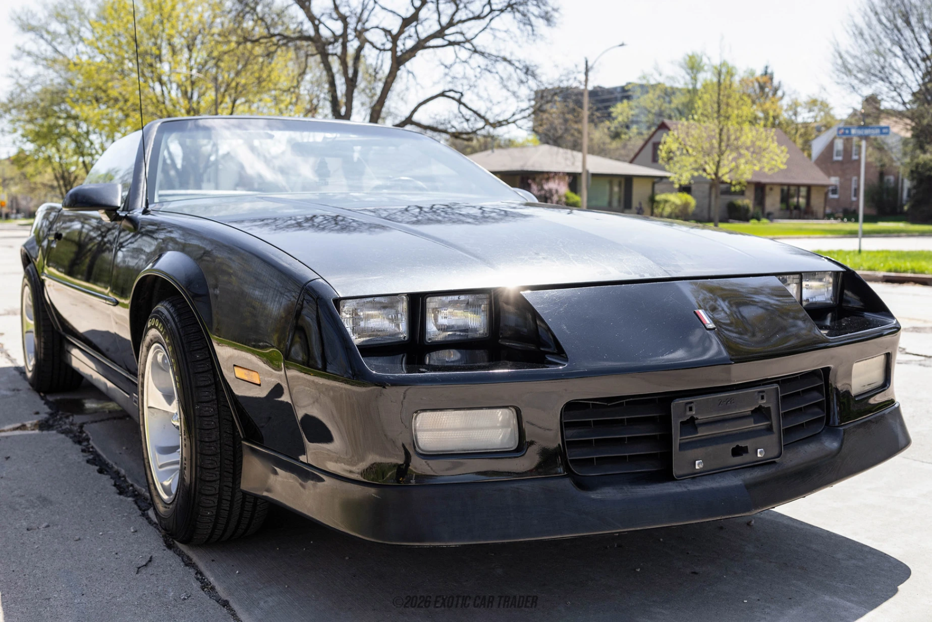 The exterior of this 1989 Chevrolet Camaro Convertible is finished in black, a timeless color that complements the car’s sharp, angular third-gen design. Pop-up headlights, a low-slung profile, and clean body lines give it a distinctly period-correct performance look. The black convertible soft top maintains a cohesive appearance when raised, while dropping it transforms the car into a true open-air cruiser. Sitting on 16-inch ZQ8 alloy wheels, the stance is slightly more aggressive than stock, enhancing its overall presence. The interior of this 1989 Chevrolet Camaro Convertible is finished in gray, offering a classic and functional cabin layout typical of the era. The driver-focused cockpit features straightforward controls and clear instrumentation, emphasizing usability. An aftermarket head unit has been added for improved audio capability, blending modern convenience with vintage styling. With the top down, the interior becomes an open and engaging space, making every drive feel more connected and enjoyable.