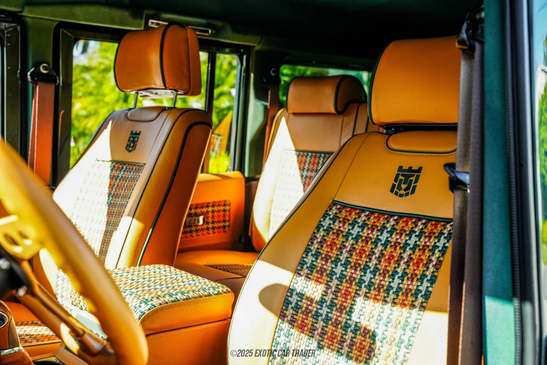 Draped in a dark green coat of paint, this 1989 Land Rover Defender 110 Restomod is a five-door station wagon, hence the 110 moniker. This is probably the most practical body style for families as it gives you two full rows of seating and ample cargo space in the rear. Furthermore, we see that the roof, rear portion, and front grille have been blacked out, while the headlamps have been upgraded to LED units. Then, the vehicle rolls on a set of black alloy wheels shod with BF Goodrich All Terrain tires. Yup, it’s definitely been modernized where it matters. The modernization theme continues into the interior of this 1989 Land Rover Defender 110 Restomod, which greets you with a nice tan-colored theme on the seats. Speaking of seats, you can accommodate five adults in the first two rows, but if that’s not enough, there are four more inward-facing seats within the cargo area. Everyone will be kept chilled via a Dakota Digital air conditioning unit within the modernized dashboard, and an Alpine touchscreen head unit handles music and infotainment needs.