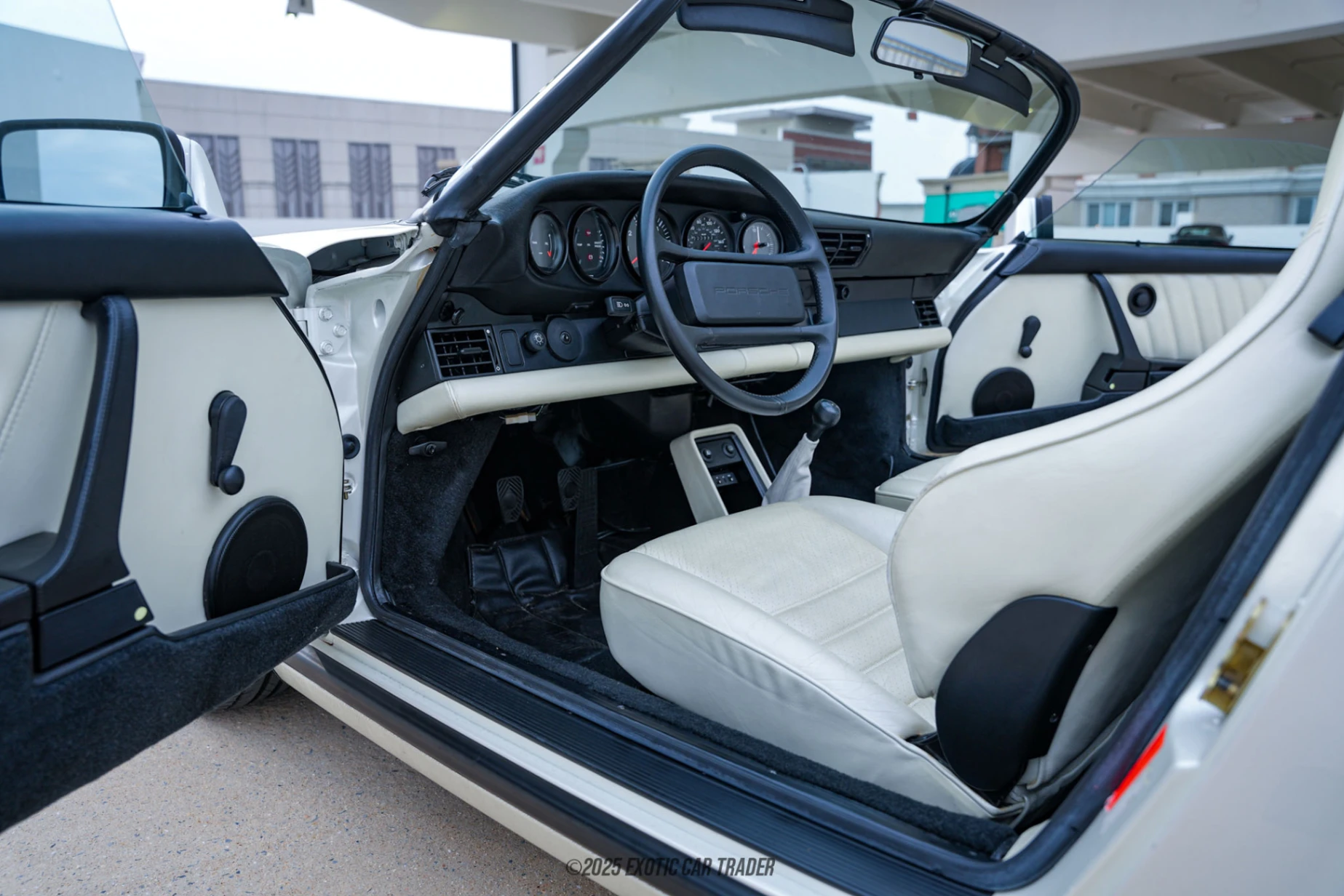 The beating heart of this 1989 Porsche 911 Carrera 3.2 Speedster is its 3.2-liter air-cooled flat six engine in its tail. The engine uses Bosch Motronic fuel injection and drives the rear wheels via a 5-speed manual gearbox. We’re told that this car also has front and rear sport shock absorbers for a more engaging driving experience.
