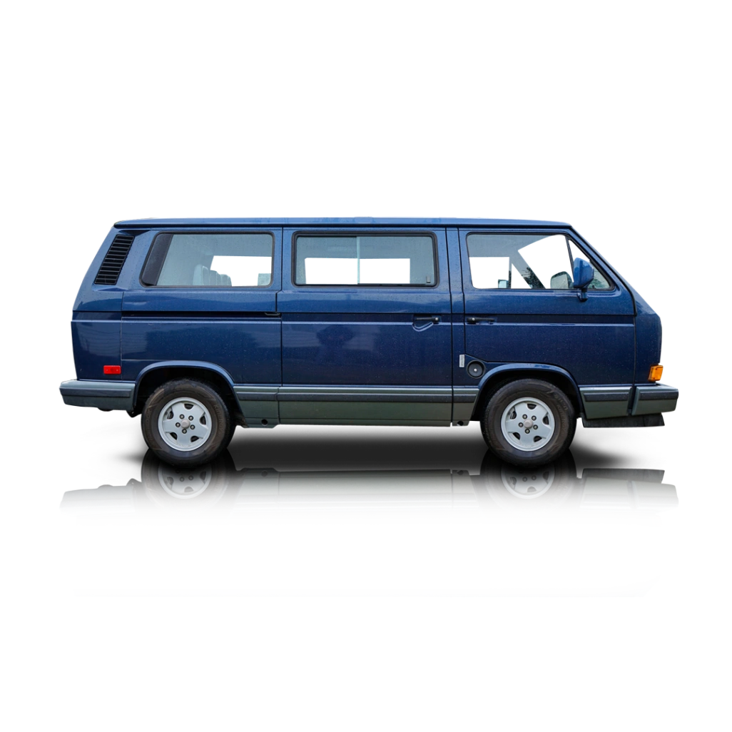 This 1989 Volkswagen Vanagon Carat gets its go-factor from a 2.1-liter water-cooled flat four in the tail. The engine uses Bosch Digifant electronic fuel injection. It drives the rear wheels through a 4-speed manual transmission.
