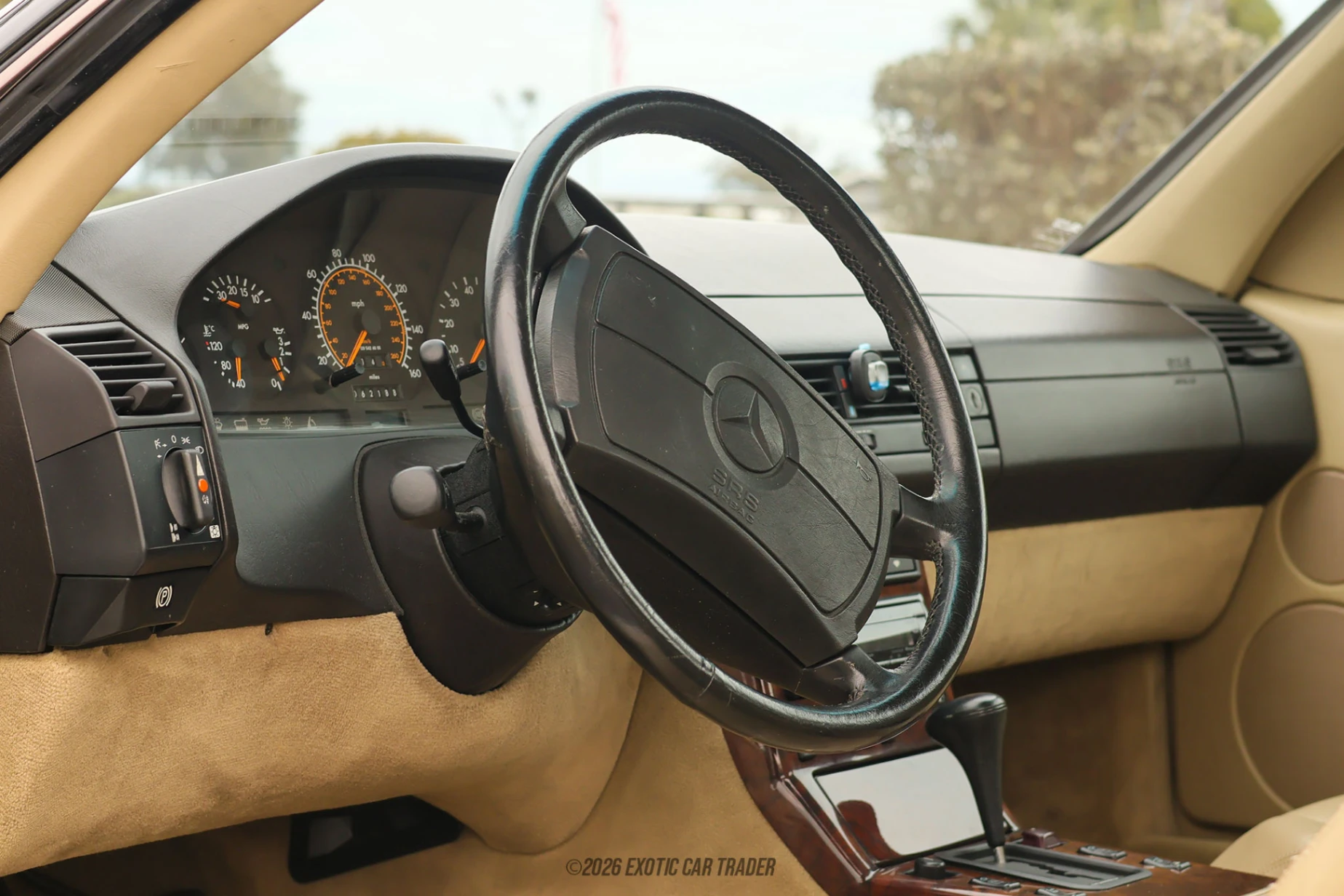 Power comes from the 3.0L naturally aspirated M103 inline-six paired with Bosch KE-Jetronic (CIS-E) electronic-mechanical fuel injection, a proven setup known for smooth operation and strong real-world drivability. The 4-speed automatic prioritizes relaxed cruising and seamless shifting, matching the SL’s grand touring intent. Independent suspension and four-wheel disc brakes deliver composed road manners and confident stopping performance, while the R129’s hallmark safety engineering includes its automatically deploying roll bar system. Overall, it is a robust, refined platform that feels engineered for longevity, stability, and effortless top-down miles.