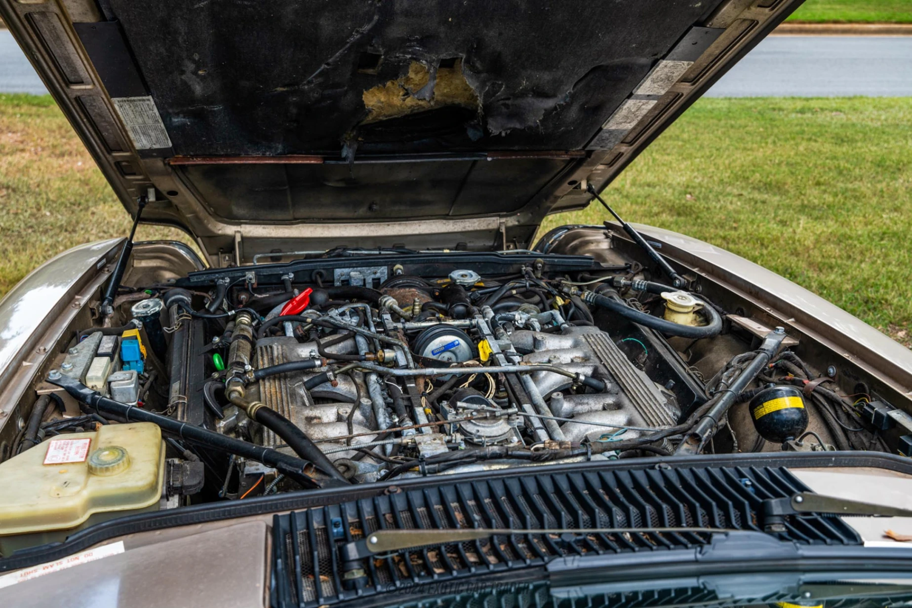 The long hood of this 1991 Jaguar XJS V12 Convertible is home to its renowned 5.3-liter V12 engine. This engine can reportedly produce around 263 horsepower and 290 lb-ft of torque when new. It delivers power to the rear wheels via a GM Turbo-Hydramatic 400 automatic transmission. The front and rear independent suspension with coil springs and a rear anti-roll bar aids in ride comfort and handling.