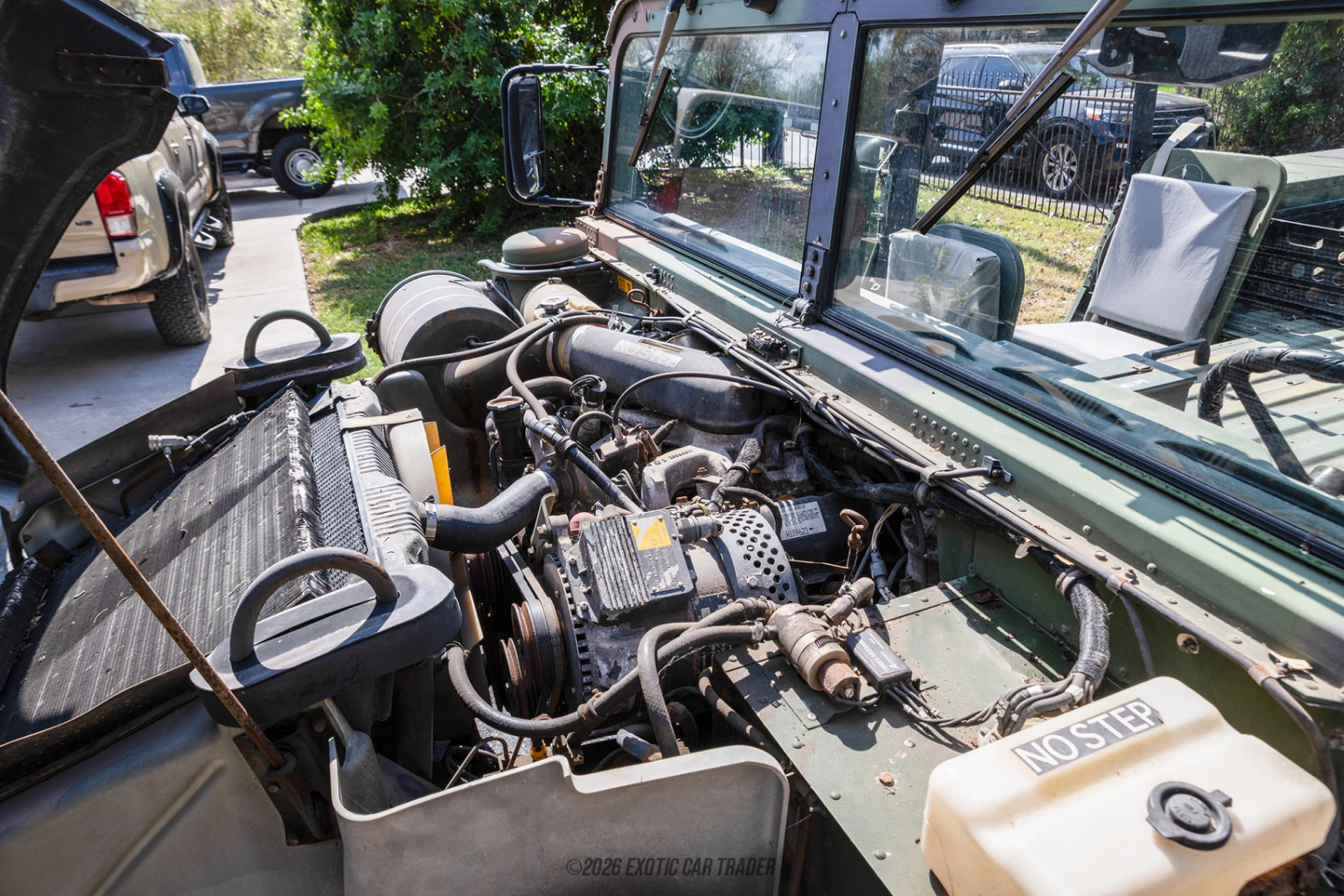 Camo Green is what this 1992 AM General Humvee wears, and you might notice its lack of doors. That’s because you can remove them for an open-air driving experience. Don’t worry though, the original doors are included with the sale. The vehicle also offers an open top experience because the soft top has been removed. Yup, this Humvee makes a convertible seem restrictive in comparison. It rides on steel wheels with proper off-road tires and will definitely put a smile on your face on every drive. The green interior of this 1992 AM General Humvee is pure military machine. There’s no hiding that fact; you’ve got cloth seats that are meant to be easily sat in and jumped out of. There’s a very purposeful dashboard ahead of the driver with myriad switches, levers, gauges and warning labels. But don’t be alarmed or confused because the vehicle is very easy to drive. Just select D and step on the gas pedal. All the features and switchgear are labeled accordingly, because remember, this is a vehicle that must be easy to operate. Myriad soldiers might jump into its driver’s seat and need to set off very quickly. So, there’s nothing finicky or unclear in purpose.