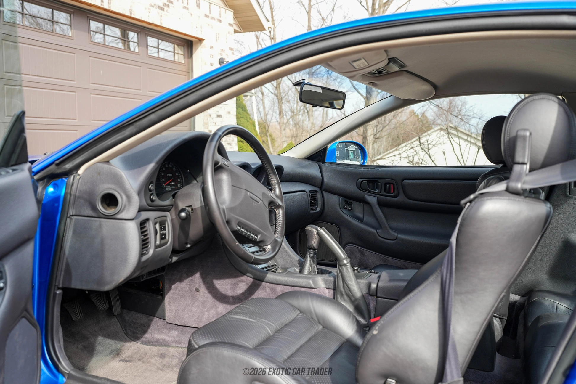 The exterior of the 1992 Dodge Stealth R/T Turbo features a vibrant Mistic Blue Metallic finish that gleams in the sunlight, accentuating its sporty lines and aerodynamic profile. This model is equipped with stylish 17-inch alloy wheels that enhance its performance and aesthetics. The pop-up headlights are a hallmark feature, adding to the vehicle's unique character. Inside, the black interior provides a contrast that highlights the overall sporty ambiance of the car. Comfortable seating is ensured with a power driver's seat, while the tilt steering column allows for customization of the driving position, making every journey enjoyable.
