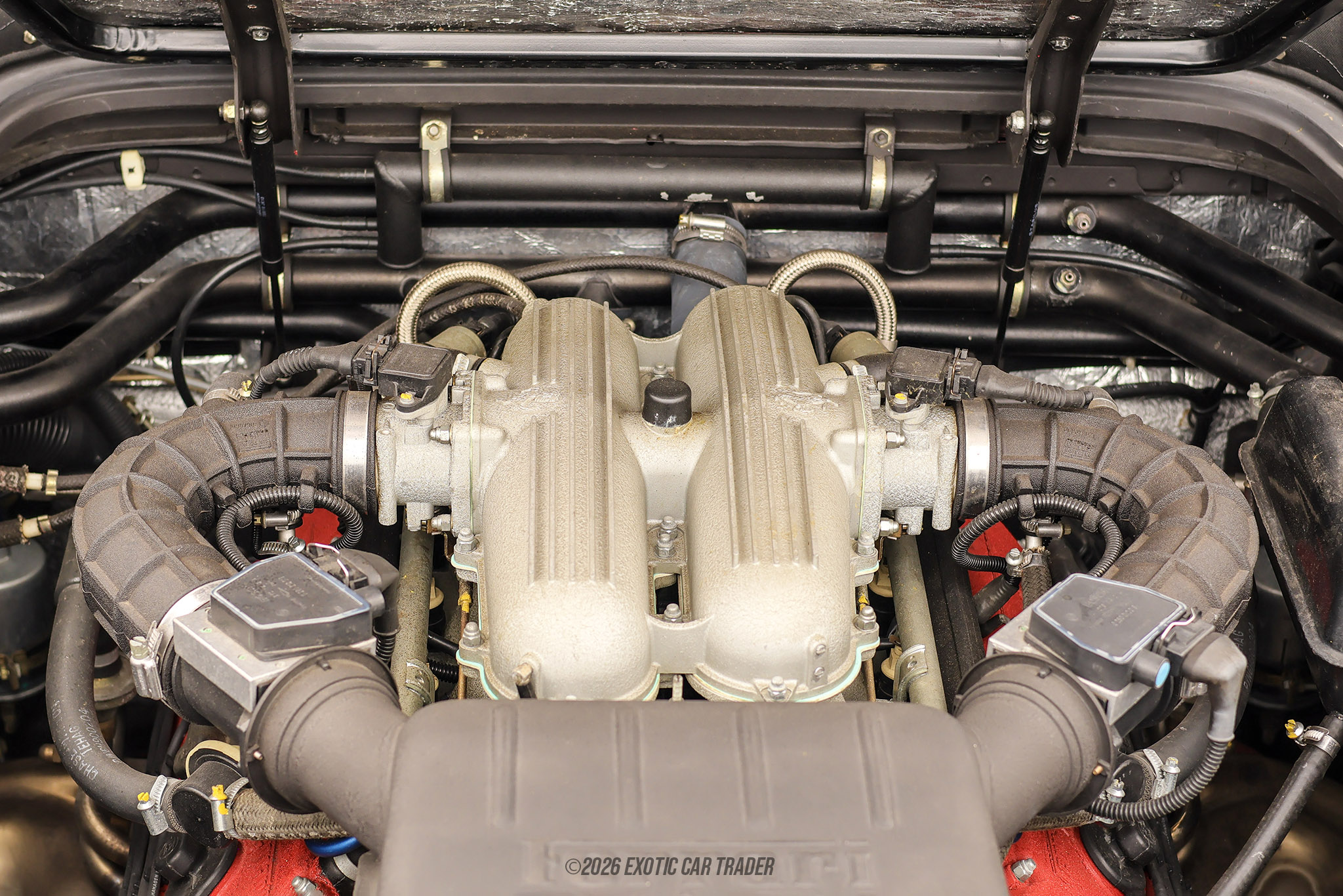 Powering this 1994 Ferrari 348 Spider is a 3.4L naturally aspirated V8, mounted longitudinally behind the cabin in true Ferrari fashion. Producing approximately 312 horsepower, this high-revving engine delivers power in a linear and engaging manner, accompanied by a distinctive exhaust note that is unmistakably Ferrari. Fuel is managed by a Bosch Motronic fuel injection system, ensuring precise delivery and reliable performance. Paired with a 5-speed gated manual transmission, the driving experience is raw, mechanical, and deeply rewarding. Power is sent to the rear wheels, allowing the 348 Spider to deliver balanced handling and an authentic mid-engine driving feel that continues to captivate enthusiasts.