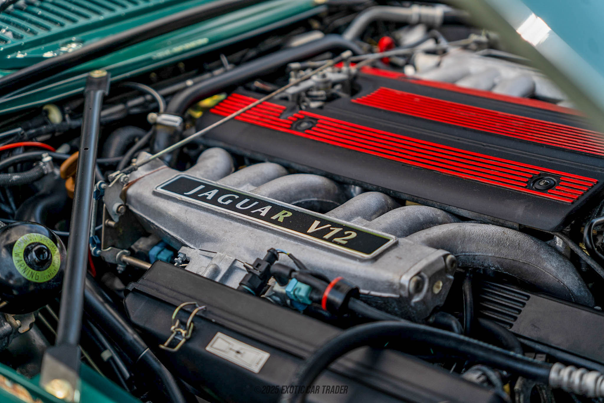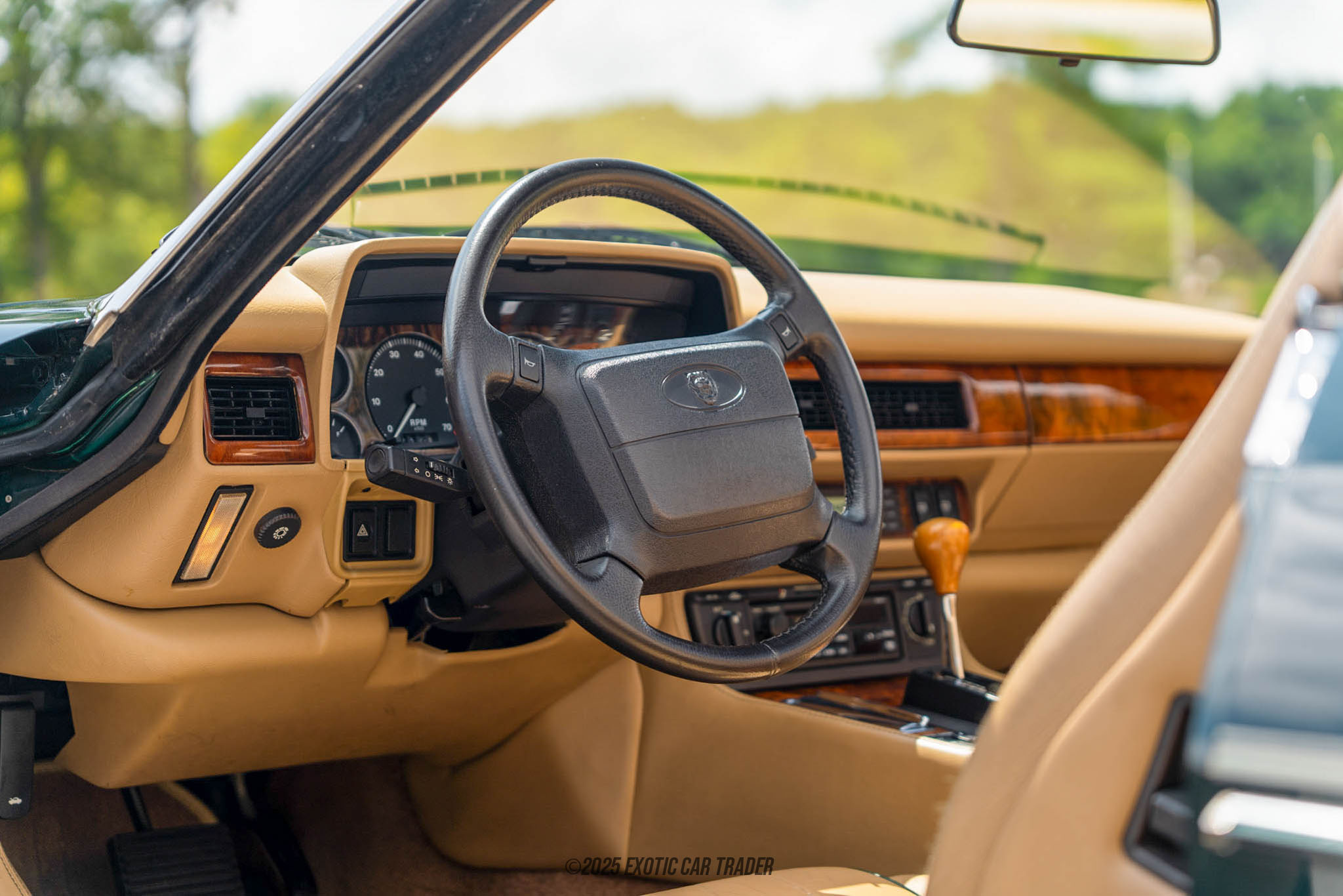 Adorned in green, this 1994 Jaguar XJS V12 Gold Edition cuts a fine dash as you drive it around town, on the freeway, or down a country lane. The car’s timeless design is further accentuated by its ovoid headlamps, long silhouette and prominent overhangs. As a later model car, this example rolls on five-spoke alloy wheels in silver. Meanwhile, the convertible top is a power-operated affair in tan, to match the car’s interior. The tan interior of this 1994 Jaguar XJS V12 Gold Edition comes in a 2+2 seating configuration. This means that two adults will be very comfortable up front, while two children can easily lounge in the rear. As a later-model car, you’ve got features such as a trip computer, automatic climate control with air conditioning, a radio with cassette tape player, and even a car phone! Granted, it may no longer be compatible with today’s digital mobile networks but is a lovely period feature nonetheless. The two front seats have got power adjustments and memory functionality is present too. Another nice feature is cruise control.