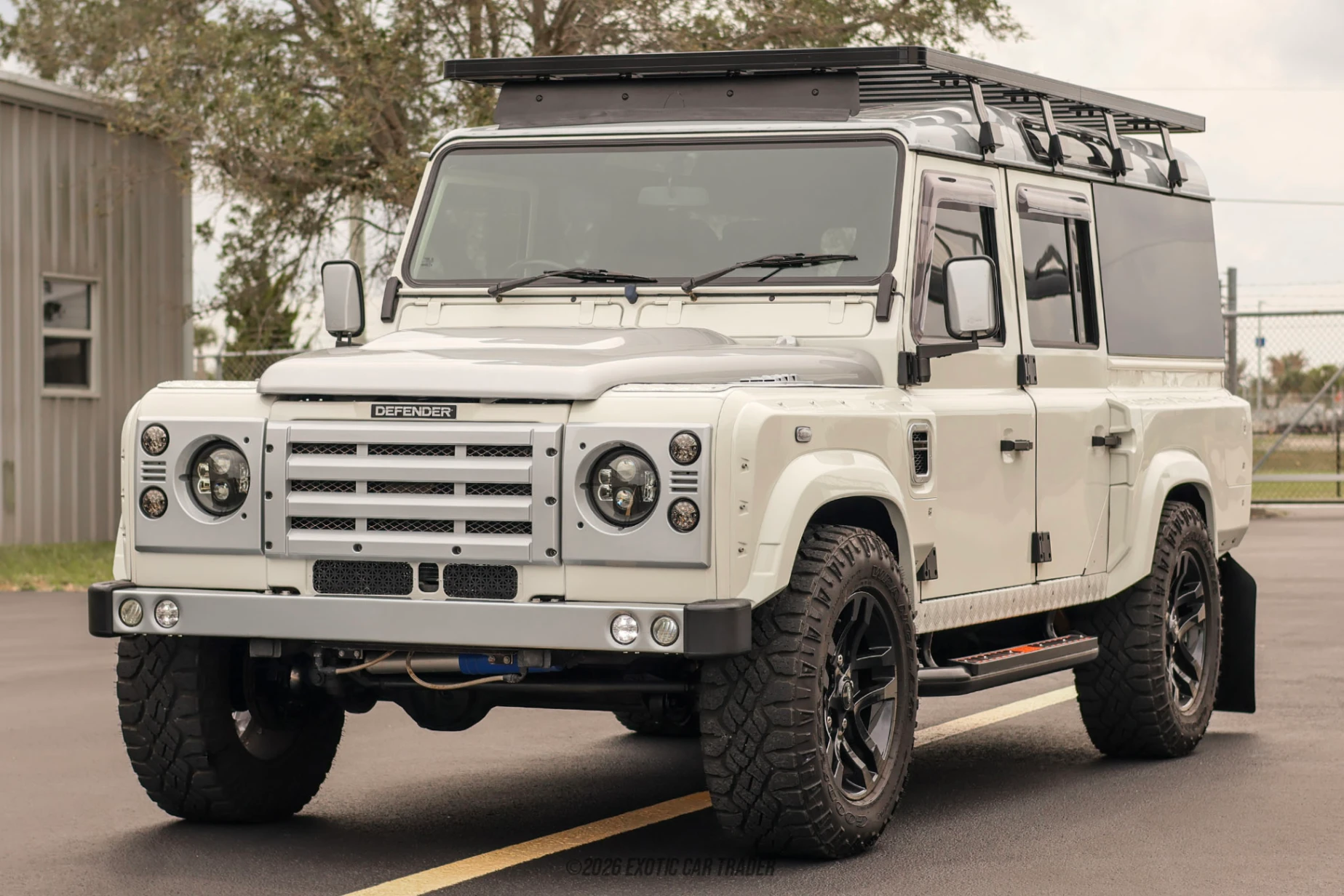 This 1989 Land Rover Defender 110 Restomod stands as a striking fusion of classic British off-road heritage and modern American performance, now showing just 10,458 miles. Undergoing a comprehensive transformation, this example is powered by a 6.2L LS3 V8 producing an estimated 500 horsepower, delivering performance levels far beyond anything offered in period. The build is further elevated by a host of premium upgrades including a Kahn widebody kit, upgraded drivetrain components, and a fully reimagined interior. With right-hand drive configuration and climate-controlled storage, this Defender offers a rare opportunity to own a highly refined and thoughtfully executed restomod that balances rugged capability with everyday drivability.