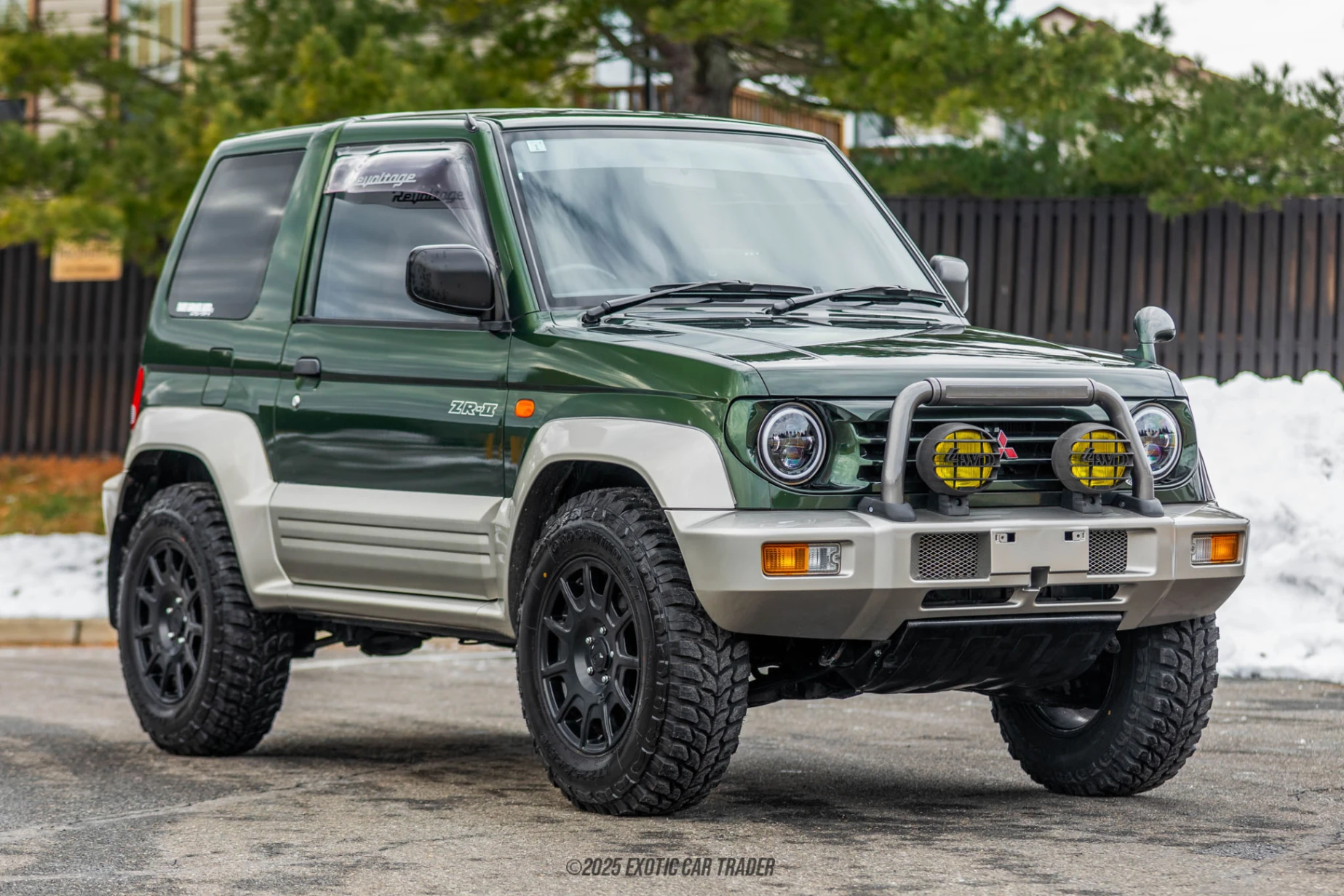 Now here’s a lovely little curio all the way from the Land of the Rising Sun – Japan! It’s called the Mitsubishi Pajero Junior, and it’s a dinky little four-by-four! Yes, this cutesy thing you see in our photos is a fully-fledged off-roader! The Pajero Junior was made between 1995 and 1998, as a bite-sized variant of Mitsubishi’s capable Pajero (or Montero, depending on where you hail from) full-size off-roader. It’s a little larger than a kei car, but not by much. This particular 1996 Mitsubishi Pajero Junior ZR-II is up for sale in Oceanside, New York, having covered a mere only over 28,000 miles so far. So, if you want a small vehicle that’s great for urban running duties but can also conquer an off-road trail and shame much larger four by fours, this is your ticket to ride.
